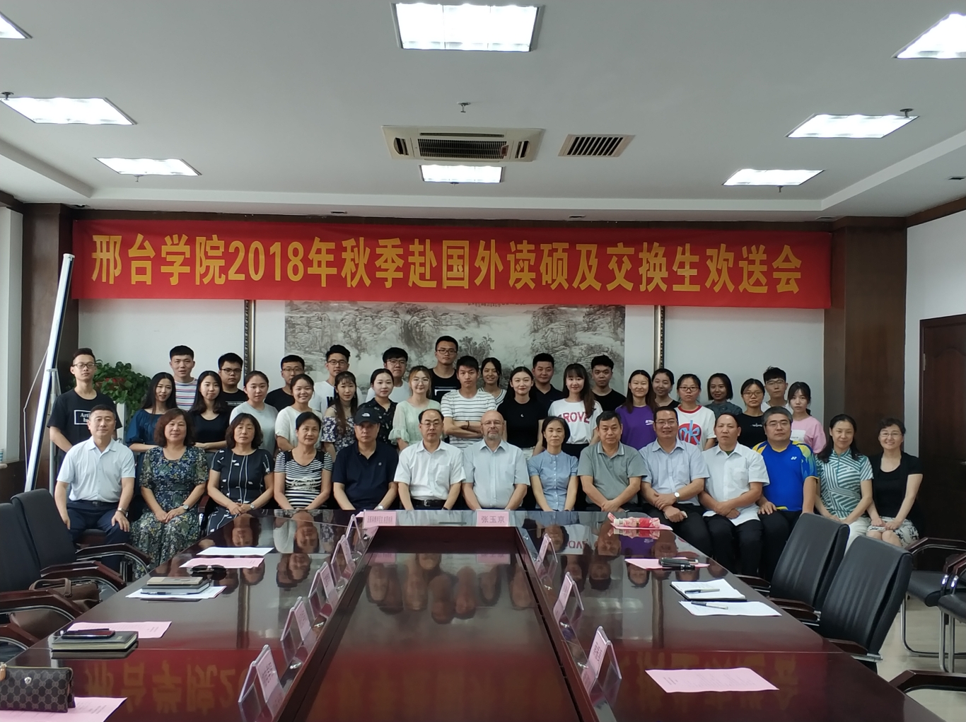 6月26日,我校隆重举行“邢台学院2018年秋季赴国外读硕及交换生师生欢送会”。副校长蔡振禹,外事办、教务处、国际教育交流学院的负责人出席了会议,相关院系的领导,俄语外教、韩语外教应邀参加了会议,共同欢送即将于今年秋季赴俄罗斯西伯利亚国立科技大学的16名读硕学生和赴韩国水原大学、马来西亚理工大学、马来西亚世纪大学、俄罗斯西伯利亚国立科技大学的21名交换生。