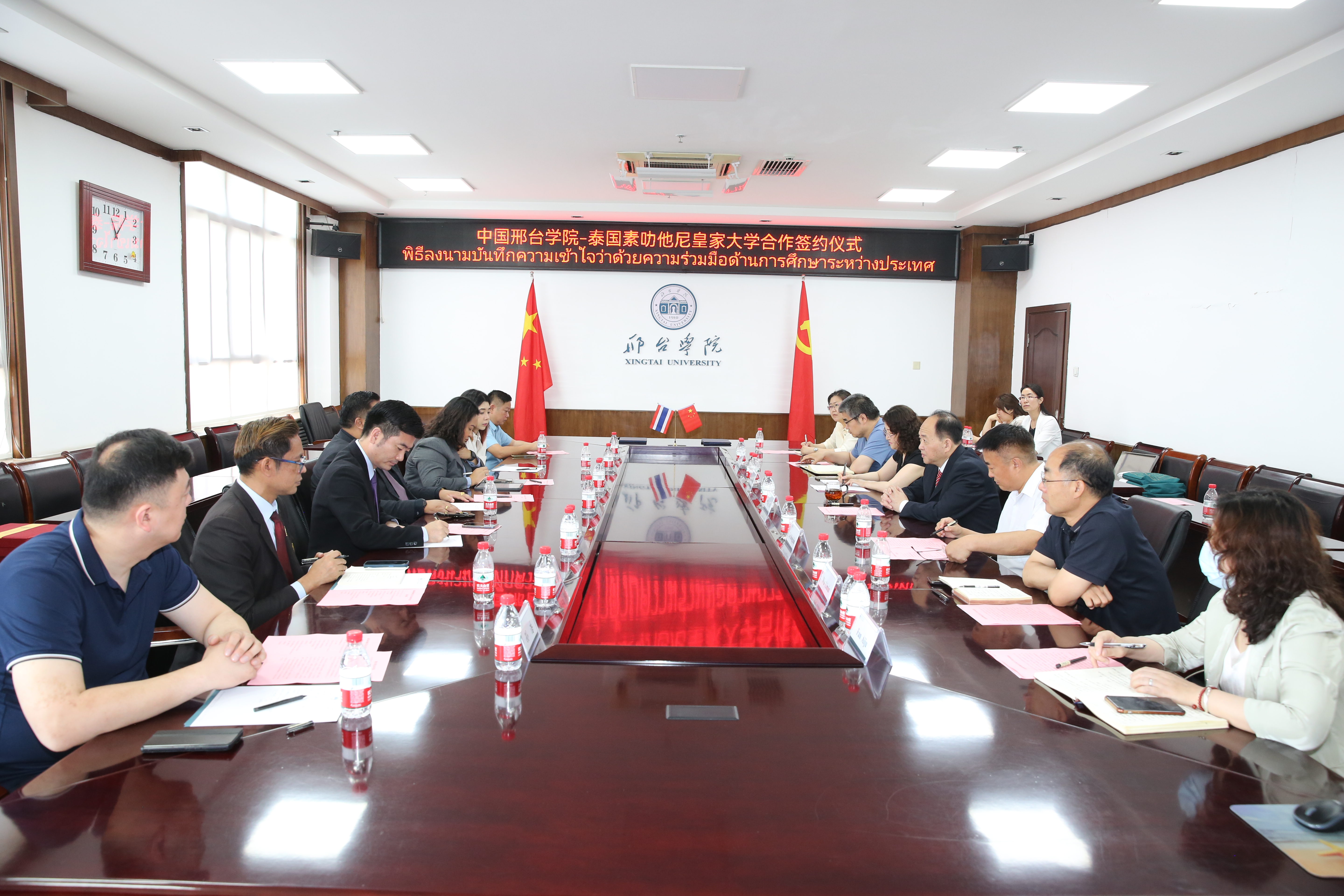 6月13日上午,泰国素叻他尼皇家大学副校长宋霸·吴提詹一行来我校访问交流。在主楼11层会议室,双方进行了合作洽谈。王自力副校长出席会议,校办室主任(外事办主任)雷宏谦、科研处处长武立民、工商管理学院院长郝庆禄、文学院副院长范爱菊及相关人员参加了活动。会议由国际教育交流学院院长赵春红主持。