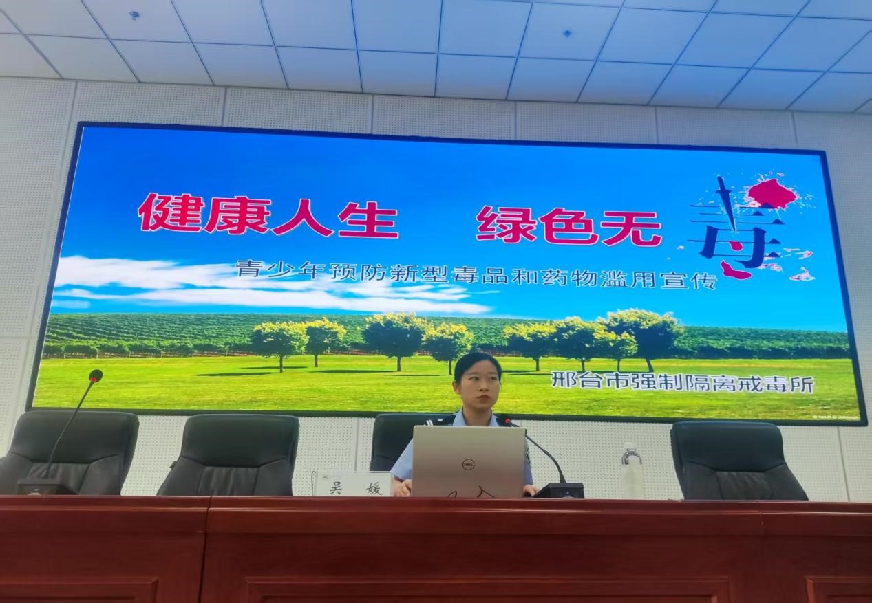 邢台市强制隔离禁毒所吴媛以“健康人生 绿色无毒”为题,结合真实案例,通过现场展示各种毒品样本和模型,介绍了传统毒品与新型毒品的种类、外观特征及其伪装形式,向师生传授了识别涉毒可疑行为、抵御毒品诱惑的技巧,深刻阐述了毒品对个人、家庭及社会的灾难性危害,并呼吁全体师生“珍爱生命、远离毒品”,积极参与无毒校园建设,共同构筑抵御毒品的铜墙铁壁。