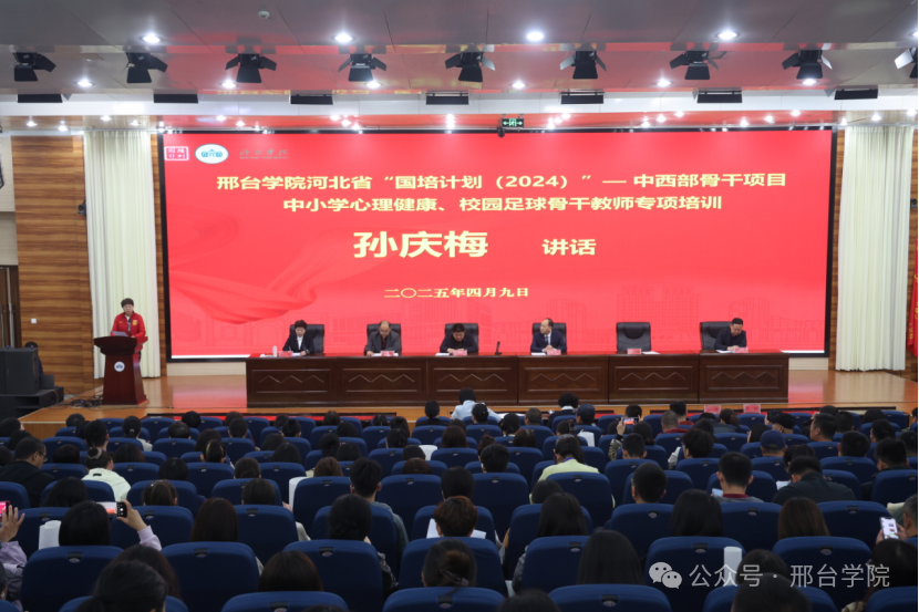 4月9日,河北省“国培计划(2024)”——中小学心理健康、校园足球骨干教师专项培训班开班典礼在邢台学院体育馆报告厅举行。校党委常委、副校长王自力出席并致辞,邢台市第三中学教育集团党委书记殷震,河北省足球专家、世界足球小姐孙庆梅,邢台市足球协会及我校师生代表共200余人参加。继续教育学院院长吕杰主持。