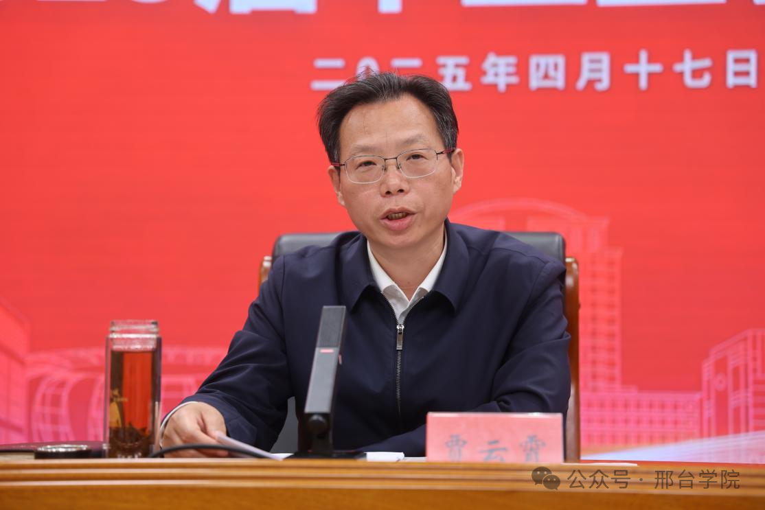 贾云霄指出,此次会议是对我校2025届毕业生就业工作的一次再动员、再安排、再部署,“春季促就业攻坚行动”开展以来,各院系高度重视,主动作为,积极行动,在访企拓岗、校园招聘、培训指导、精准帮扶等方面取得一定实效,形成了全员抓就业的良好氛围。但面对严峻的就业形势和任务,我校就业工作仍存在诸多问题和挑战,任务依然艰巨。贾云霄强调,要提高政治站位,充分认清做好就业工作的重要意义。要站在“为党育人、为国育才”高度,把就业工作作为一项政治任务,摆在突出重要位置,深化思想认识,提高政治站位,压实工作责任,落实就业“一把手”工程,以毕业生高质量就业检验深入贯彻中央八项规定精神学习教育成果。要深化工作举措,科学有效推进就业工作取得实效。要摸清底数,准确掌握毕业生就业意愿,研究制定务实有效的工作举措,切实做到“一生一档、一生一策”的精准帮扶。要畅通渠道,聚焦学生需求,立足邢台本地产业需求,拓展京津、长三角等就业市场,为毕业生提供更多优质岗位。要加强就业指导,开展专业培训,做好学生就业观念教育引导。要压实工作责任,为做好就业工作提供坚强保障。各院系要健全机制,加强组织领导,把就业工作纳入院系重要议事日程,定期研究部署,确保责任落实到位。要形成合力,将思想统一到党中央的决策部署上来,领导干部要扛起主体责任,带头攻坚克难。各单位要各尽其责,履行职责,明确责任,明晰任务,主动参与,形成招生、培养、就业“闭环联动”工作机制。要强化工作考核,确保各项工作落到实处。要守牢数据真实底线,严格执行“四不准”“三不得”要求,把工作做实做细做深,切实落实就业数据监测要求。要做好跟踪反馈,及时调整就业工作策略,形成“招生—培养—就业—反馈—改进”良性循环。要建立考核奖惩机制,将就业工作纳入二级学院考核“硬指标”,确保就业工作持续发力。
