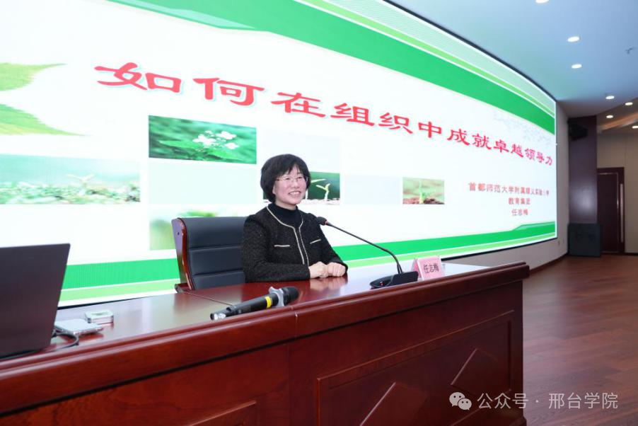 任志梅作《如何提高校长领导力》的主题报告,强调要以坚定的志向为基础,从三管、五带、七抓入手提升校长的领导力。注重沟通的重要性,形成问题解决的系统思维,换位思考,从而提升核心竞争力,成为一名优秀的学校管理者。