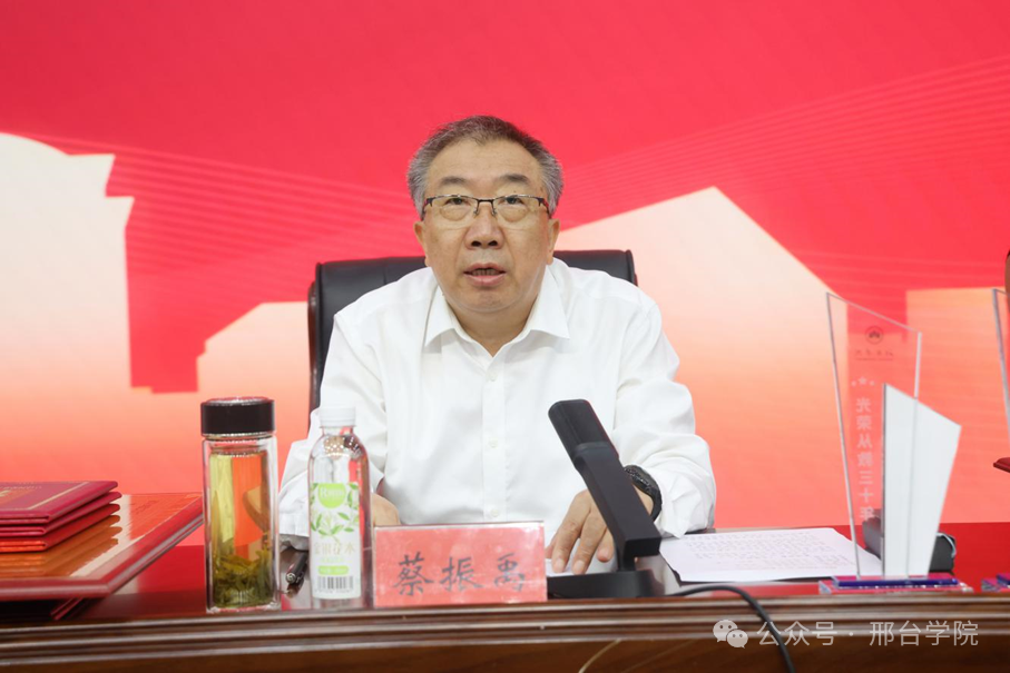 蔡振禹指出,强国必先强教,强教必先强师。教师队伍建设要以教育家精神铸魂强师,不断提升教师教书育人能力,这是新时代人民教师的崇高使命。当前,学校在高水平应用型大学建设发展之路上,正处于全面深化改革、克难奋进、创新突破的关键时期。一是要育才造士、为国之本,坚持铸魂育人,培育时代新人。教育者要深刻认识教育的基础性、先导性、全局性地位,心有大我、至诚报国,忠于党和国家的教育事业,将自我价值实现与家国天下的人类事业联系在一起,以高度的爱国情怀和社会责任筑牢教育强国的根基,在践行“强国有我”目标,落实“立德树人”根本任务,推进“三全育人”“五育并举”上敢作敢为、创优争先,扎根邢襄大地、立足教育工作实际,将教育家精神与本校历史、教育实践生动结合,努力实现自身学习力的积淀、科研力的突破、思想力的升华,为新时代中国特色社会主义铸魂育人。二是要做到言为士则、行为世范,秉持正己守道,躬耕三尺讲台。唯有勤学、广学、恒学、兴学方能有效回应教育变革、知识创新和学生的多样性、动态性需求。安教、乐教、善教是教师的必修课,广大教师要自觉增强自我发展、自我提高责任感;自觉更新教育理念、扩大知识储备,踏踏实实做学问、扎扎实实搞研究,以学识育人、以德行化人,用心引导学生正道力行、探索创新、应用实践,做一个塑造学生品格、品行、品味的“大先生”,当好学生为学、立事、做人的“引路人”。三是要做到启智润心、乐教爱生,用甘于奉献的仁爱之心,促进学生全面发展。全体教师以教育家精神为引领,勇担国家责任和弘道使命,自觉锤炼道德品质、塑造理想人格,以教育为志业,不断增进育人智慧;用热爱教育的情怀、奉献教育的赤诚、执着教育的坚守,甘为人梯、乐于奉献,于细微处育人、于点滴处入心,围绕学校各项重点发展任务,用坚韧不拔的顽强干劲、热爱教育的坚定信念,书写教育人生、铺就强国之路、托举民族未来,为培养更多优秀人才和推动社会进步和国家繁荣做出更大的贡献。
