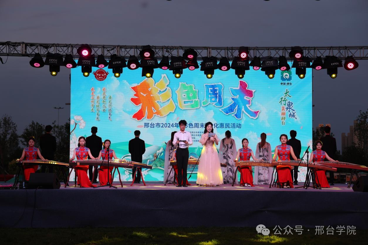 5月26日晚,邢台市2024年“彩色周末”文化惠民活动教育系统专场在七里河同心岛火热开演,吸引了众多市民前来观赏。活动由市委宣传部主办,市委教育工委、邢台学院承办,市文旅集团协办。