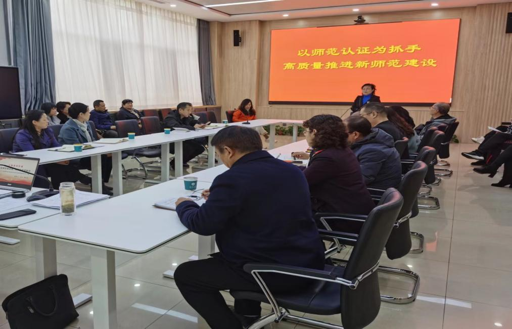 蔡振禹强调,我校师范教育源远流长、底蕴深厚,在服务地方发展方面具有天然优势,教师教育学院承担着师范教育传承创新和发展的重要使命,在新师范建设中要精准把握当代师范教育新特点,明确新师范建设发展路径,一是要把握协同提质重大机遇,持续加大合作办学力度,大力实施多校多平台协同发展,不断强化基础教育共同体建设及科学教育特色师范项目建设,构建教师教育新生态。二是师范认证对提高教师整体素质和师范类专业教学质量至关重要,它不仅是对师范类专业质量的严格把关,更是对未来教师培养的高度重视。要切实抓好师范专业认证工作,以师范认证的各项标准为依据,全面推动师范专业内涵不断提升。三是要以强化学科建设为牵引,促进学科交叉融合,凝练特色优势学科方向,力争推动硕士学位授予单位建设实现突破。四是要强化使命感和责任感,激发教师队伍建设活力,全面提升师资队伍水平,筑牢人才强校根基。