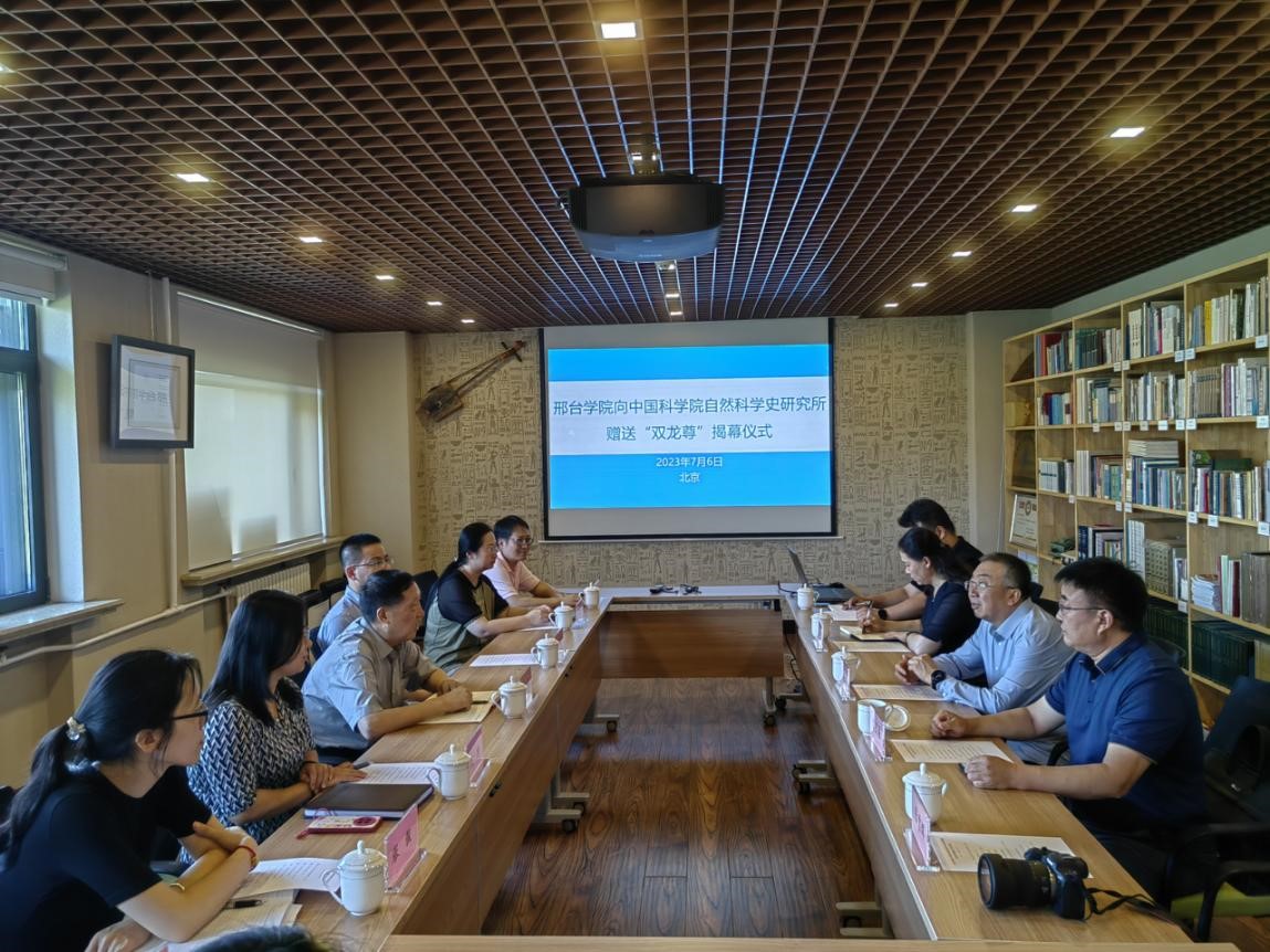 自2022年9月,邢台市人民政府与自然科学史研究所签订战略合作框架协议以来,双方在我校科学教育学科建设、郭守敬创新研究院发展,以及郭守敬纪念馆展陈内容升级等方面开展了卓有成效的合作。邢台市人民政府委托我校向自然科学史研究所赠送礼物以示纪念。
