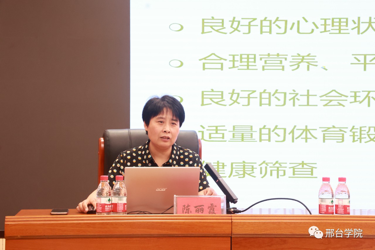 为向我校师生普及健康管理知识,引导师生养成科学健康的生活方式,提升师生自我防病能力,根据学校党委“讲大局、懂业务、重服务、有活力”四型机关建设活动要求,结合我校教职工体检情况,校工会与校医院于6月1日下午,邀请邢台市人民医院陈丽霞主任莅临我校图书馆学术报告厅,开展了一场以“疫情时代下的慢性病健康管理”为主题的健康知识讲座。