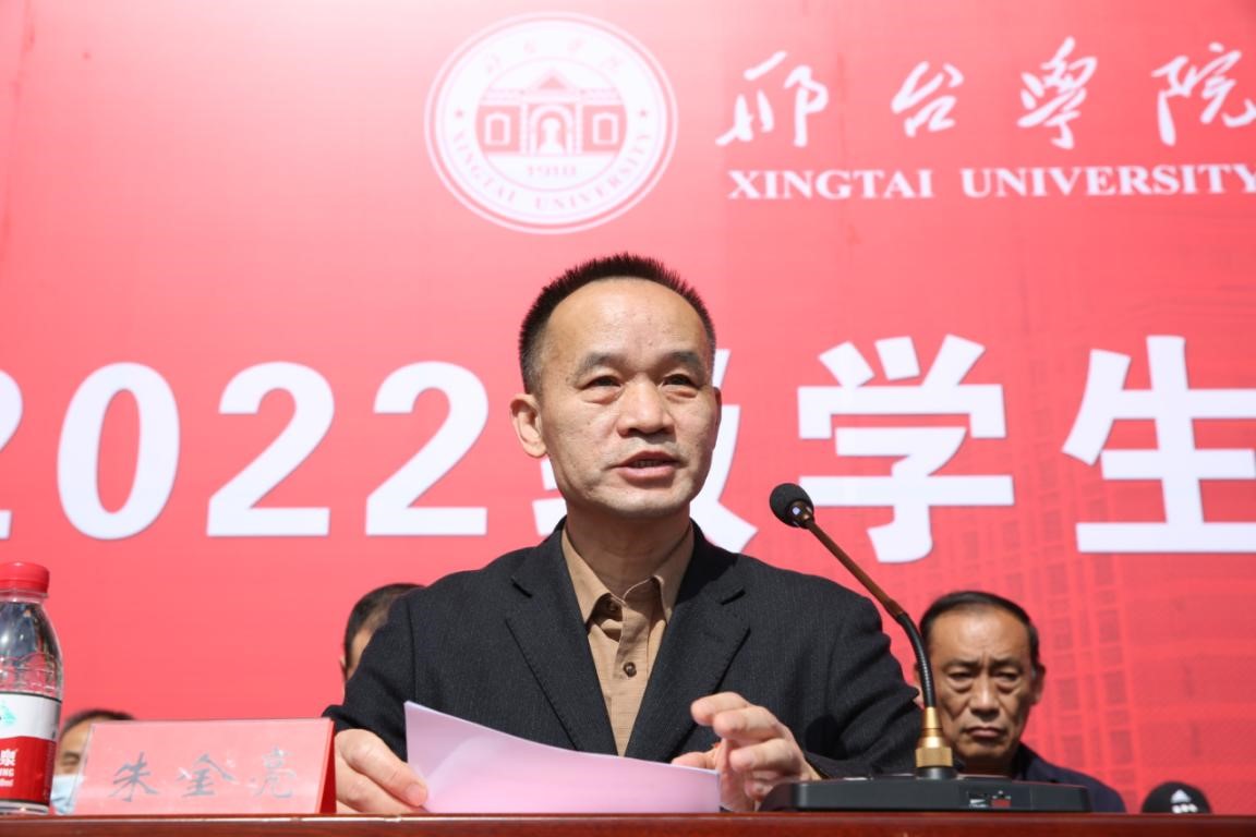 5月7日上午,邢台学院2022级学生军训动员大会在学校西操场隆重举行。党委常委、副校长徐惠敏,襄都区区委常委、武装部部长王首书,学校相关职能部门的主要负责同志和各院(系部)的书记、副书记、学管主任、辅导员老师及2022级全体参训学生参加了动员大会。大会由党委副书记朱金亮主持。