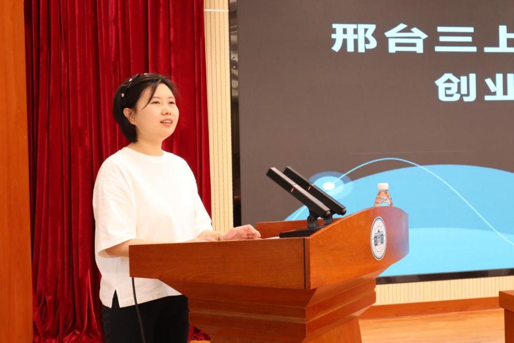邢台市三上科技有限公司总经理史晓娟介绍了三上科技有限公司的基本情况、公司经营理念、主营业务以及创业过程中的曲折经历。从初创的艰难、过程的曲折、坚持不懈后的成功,永不服输的精神让这个弱小的身躯撑起一个大大的梦想。她讲到,努力就会有回报是因为我们是站在巨人的肩膀,生在一个和平、继往开来充满希望的国度,一个强大而盛世的国度;正是在这样的环境中,有一群人在鼓励着你,在背后推着你走,在前面提携着你,肯定你的点滴进步,优越环境加上辛勤的努力塑造我们的优势。她希望学生要把握大势、抢占先机,直面问题、迎难而上,瞄准世界科技前沿,逐梦新时代,努力建设世界科技强国。