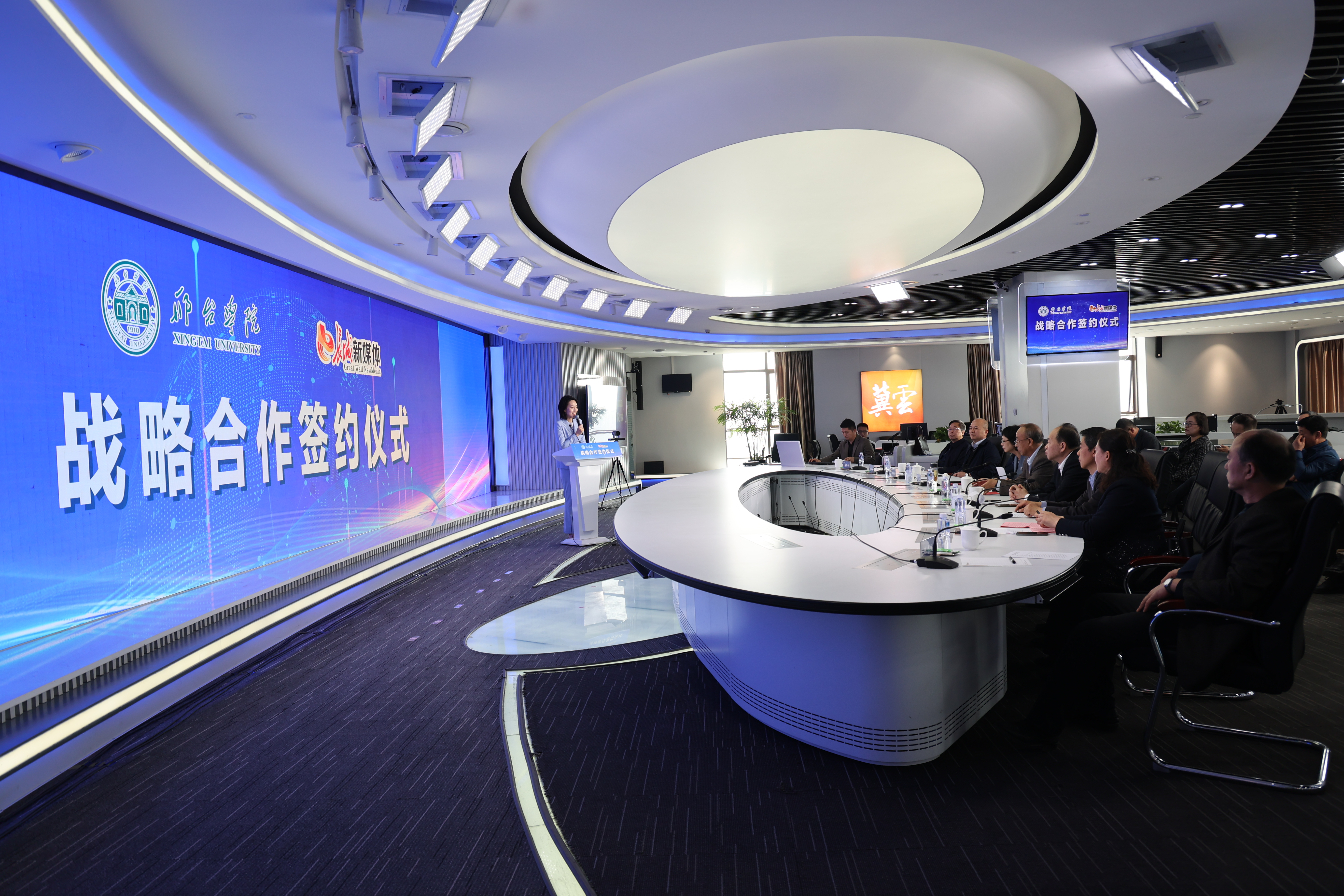 4月9日上午,邢台学院与长城新媒体集团战略合作签约仪式在冀云·融媒体中心举行。长城新媒体集团党委书记、董事长赵兵,党委委员、副总经理王悦路,党委委员、技术总监张保安,党委委员、副总经理薛泽锋;邢台学院党委书记侯贵星,邢台学院党委常委、副校长王自力出席签约仪式。