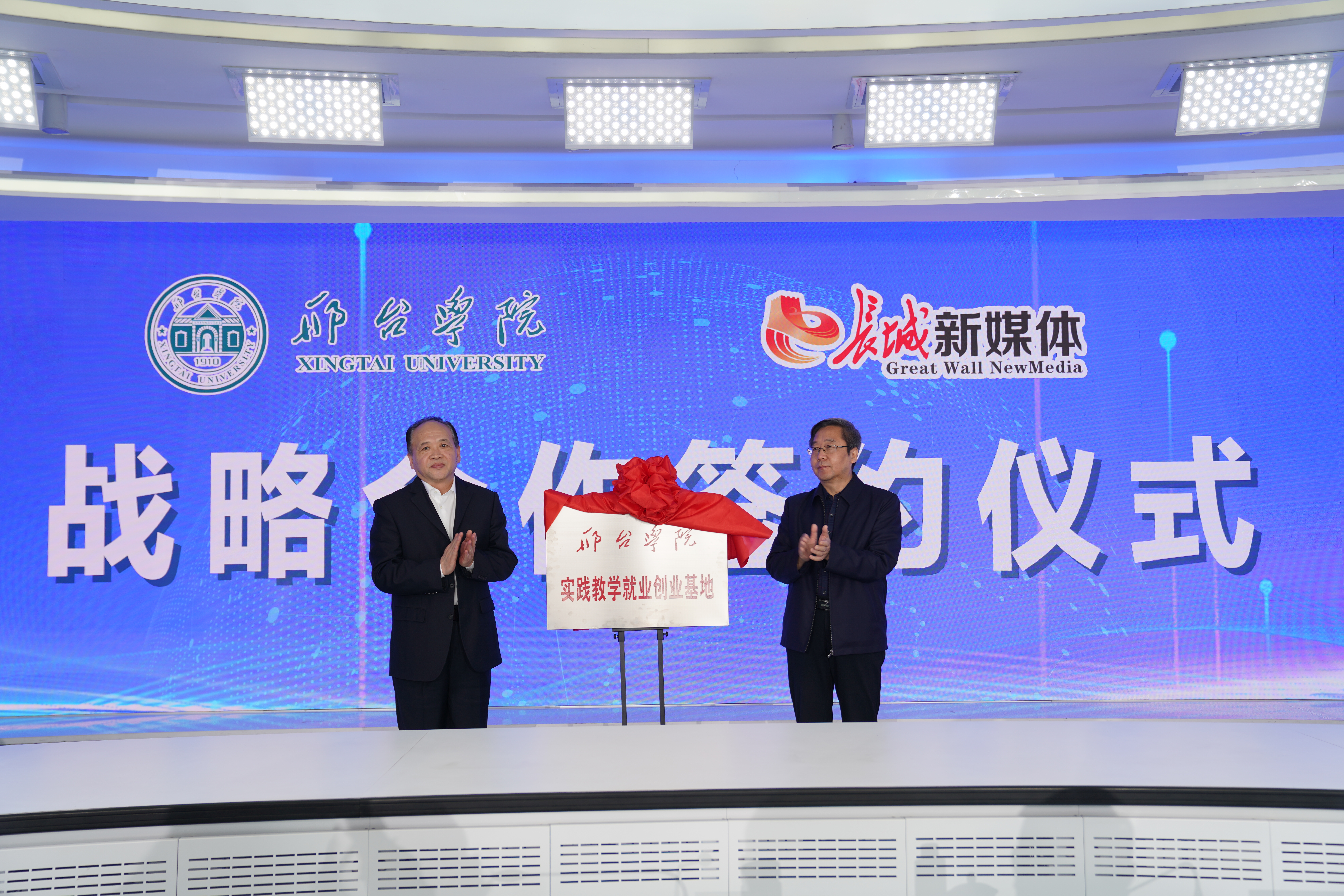 仪式上,邢台学院党委常委、副校长王自力和长城新媒体集团党委委员、副总经理薛泽锋共同为“邢台学院实践教学就业创业基地”揭牌,随后双方签订了战略合作协议。