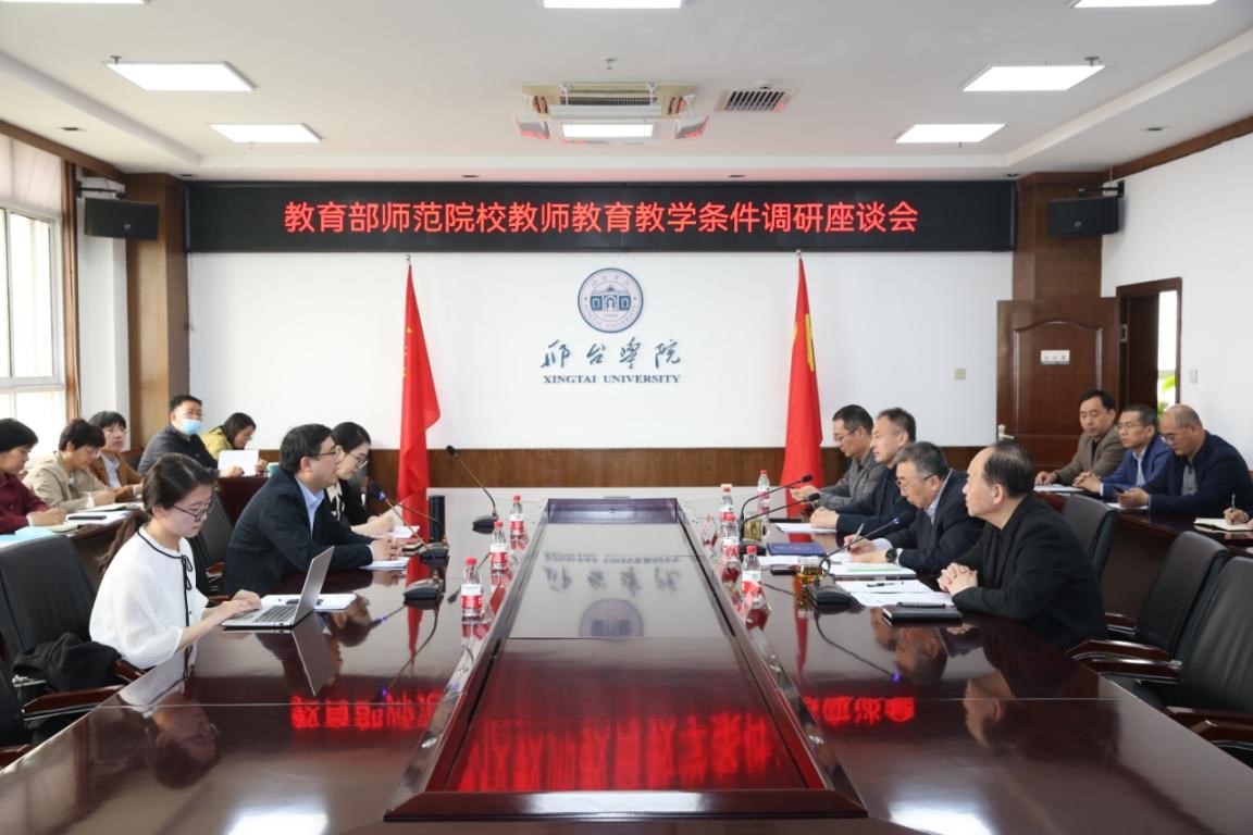 为了深入贯彻落实习近平总书记关于教育的重要论述,落实《中共中央国务院关于全面深化新时代教师队伍建设改革的意见》,推进实施新时代基础教育强师计划,构建高质量教师教育体系,教育部教师工作司委派天津师范大学李洪修教授等一行三人组成专家组,于4月14日对我校教师教育教学条件开展专项调研。校长蔡振禹、副校长肖士恩、各相关职能部门及15个师范专业相关院(系部)主要负责人参加座谈会议。会议由副校长王自力主持。