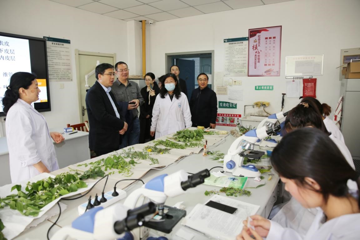座谈会前,调研专家组参观了学校四师旧址,对我校教师技能实训中心和各师范专业实验室进行现场考察调研,深入了解各师范专业实验室是否满足人才培养需求,实验室设备是否满足师范生适应中小学新课标教学要求,现有仪器设备管理使用及智慧教室建设与使用情况。现场指出当前我校教学实验方面存在的不足和薄弱环节,提出了针对性的意见建议,并就天津师范大学指导我校教育教学条件建设的提升进行交流研讨。
