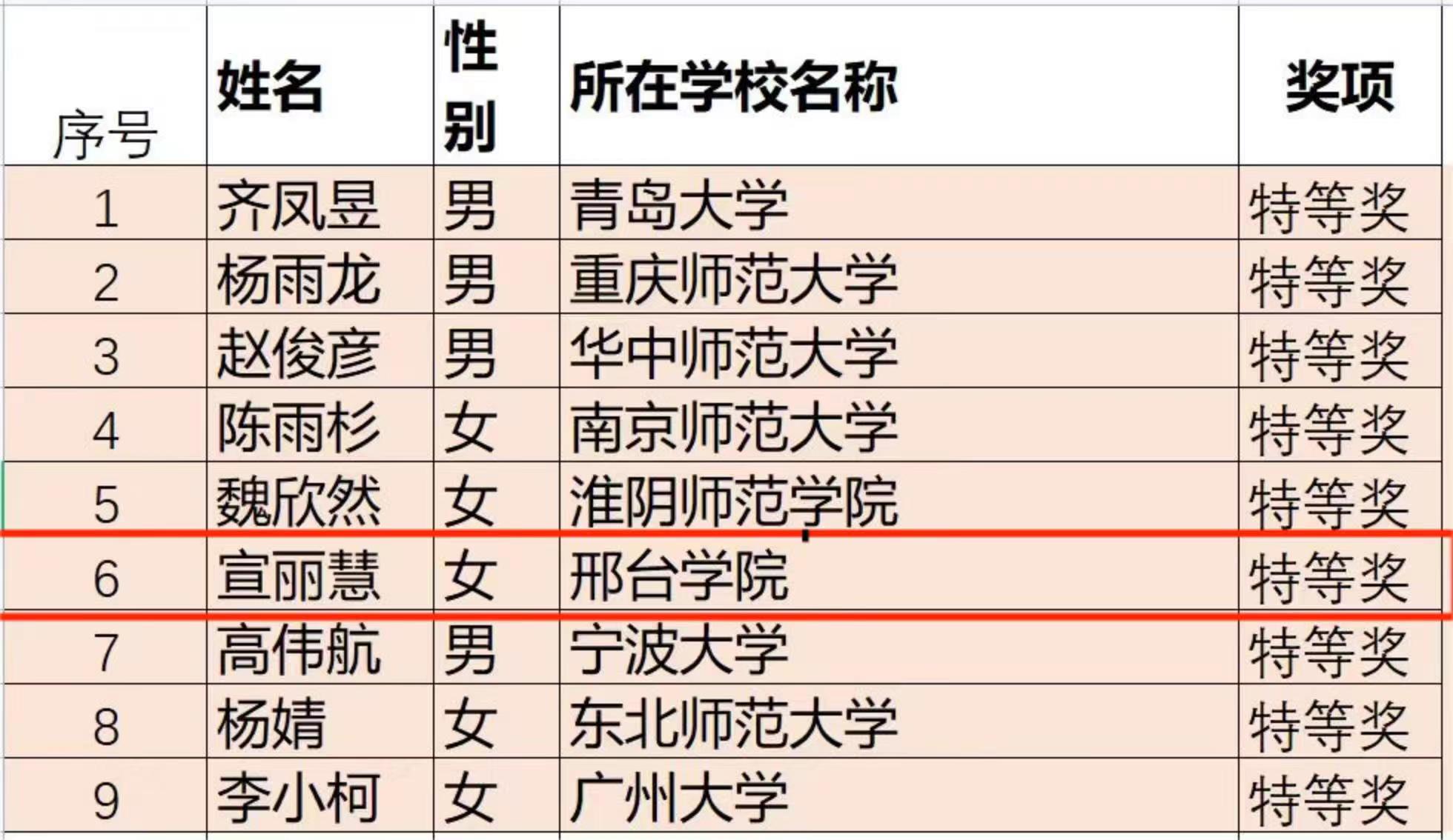 邢台学院资源与环境学院学生宣丽慧、石熠璇和高肖甜积极拼搏,勇创佳绩,分别荣获特等奖、二等奖和三等奖。资源与环境学院在本次竞赛取得的优秀成绩彰显了地理学子扎实的专业素养和顽强拼搏的精神,也是资源与环境学院三位指导教师王义山、李山泉、千琳勃辛勤指导的硕果。