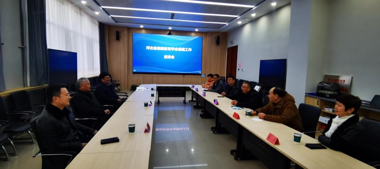 1月30日,河北省继续教育学会筹建组到我校调研继续教育工作并召开座谈会。筹建组组长于国莹、副组长王文胜、陈岩、筹建组办公室主任李凯萍,我校副校长王自力、校办公室主任雷宏谦、继续教育学院副院长吕杰及相关人员参加座谈会。会议由校长蔡振禹主持。