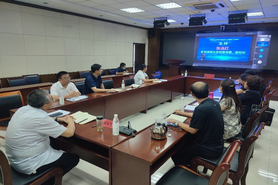 2022年8月23日上午,师范教育协同提质计划南京师范大学团组工作联席会在南京举行。教育部教师工作司任有群司长以视频方式发表讲话。中国教师发展基金会张东燕副秘书长、浙江马云公益基金会于秀红理事长出席并致辞,河北省、江苏省、广西壮族自治区教育厅领导以及南京师范大学、河北师范大学、沈阳师范大学、广西师范大学、唐山师范学院、广西科技师范学院领导参加了会议。我校蔡振禹校长、肖士恩副校长和相关职能部门负责同志分别在线上线下参加会议。