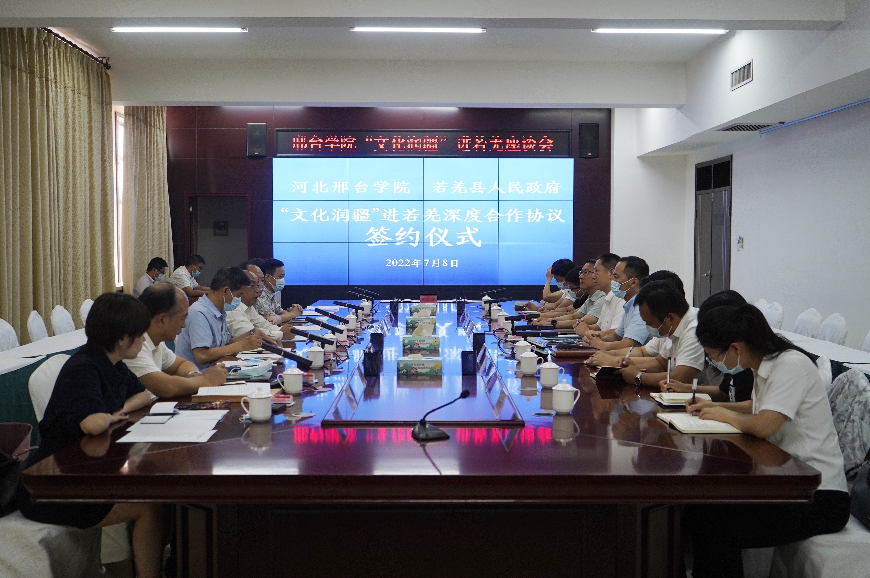 签约仪式后,我校戏剧影视艺术系、音乐舞蹈学院、创新创业学院等部门领导重点介绍了专业发展建设、校园文化建设、创新创业、文化润疆等方面工作,并与参会的若羌县各部门主要领导在教育、文化、文艺创作、科技创新方面进行了具体深入的座谈交流。