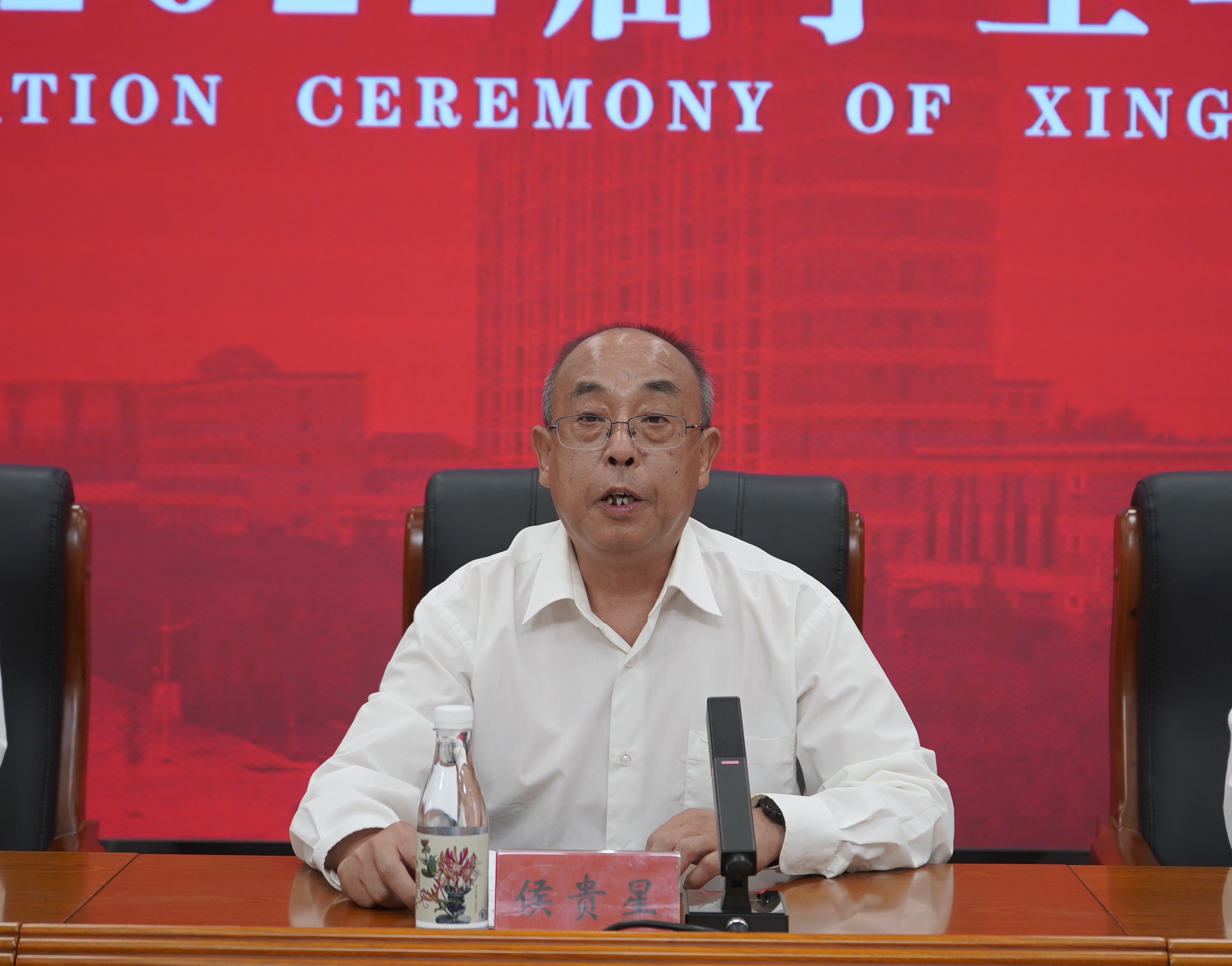 校党委书记侯贵星在主持讲话中希望同学们铭记老师的谆谆教诲和校长的殷切期望,不负韶华,不负时代,在青春的赛道上奋力奔跑,尽快适应社会、适应岗位,踔厉奋发、勇毅前进,早日实现自己的梦想。