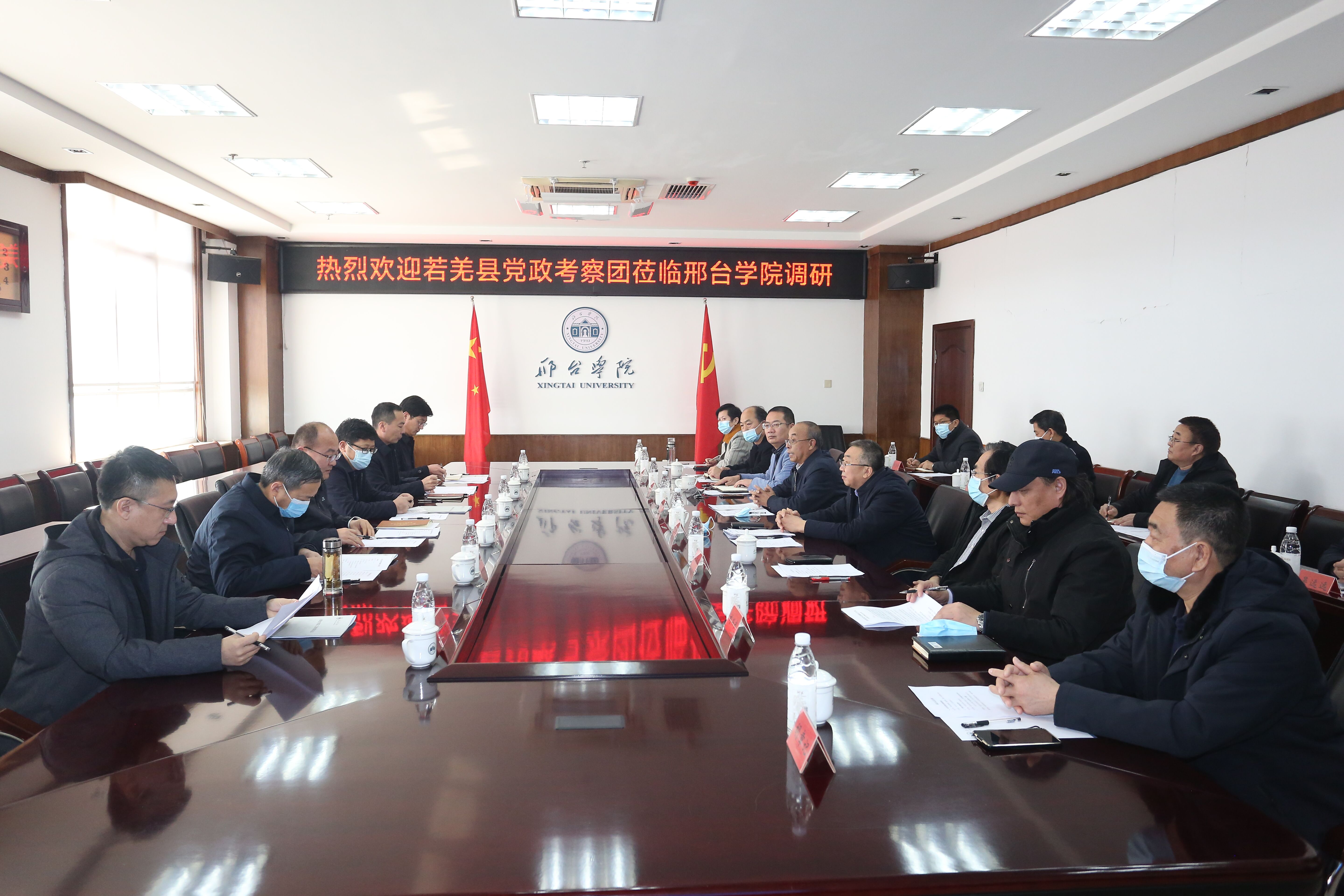 蔡振禹校长向考察团介绍了我校的基本情况,他表示邢台学院和若羌县有很深厚的友谊,双方可结合实际需求实现精准对接,聚焦特色,整合双方优质资源,积极探寻校地合作方案,实现高校人才科技助力地方经济社会发展。