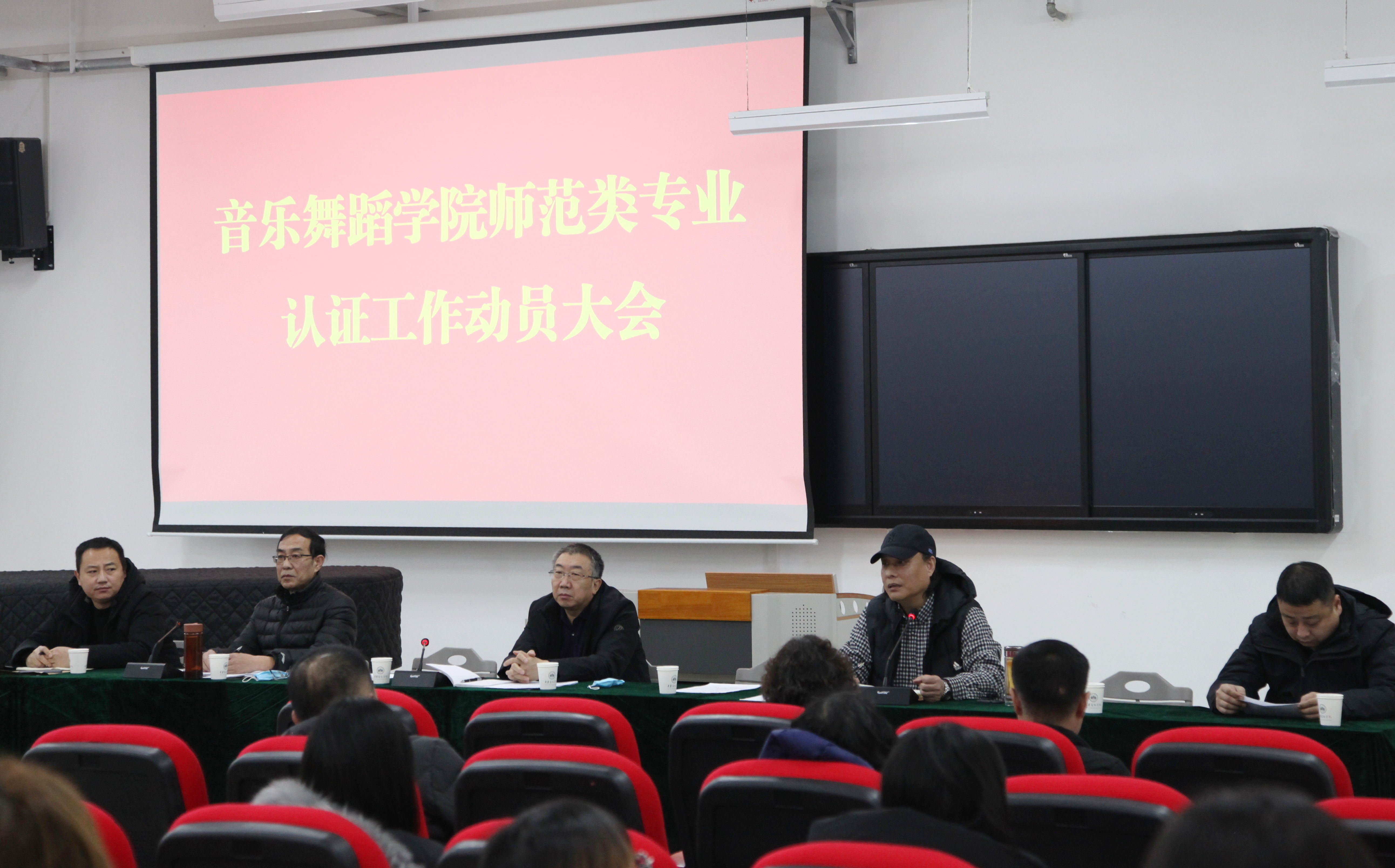 为全力冲刺师范类专业认证工作,12月23日上午,音乐舞蹈学院在四号楼106室召开师范类专业认证工作动员大会。邢台学院校长蔡振禹在教务处副处长孙东岩陪同下出席会议。会议由音乐舞蹈学院党委书记路永振主持,院领导班子及全院教职工参加会议。