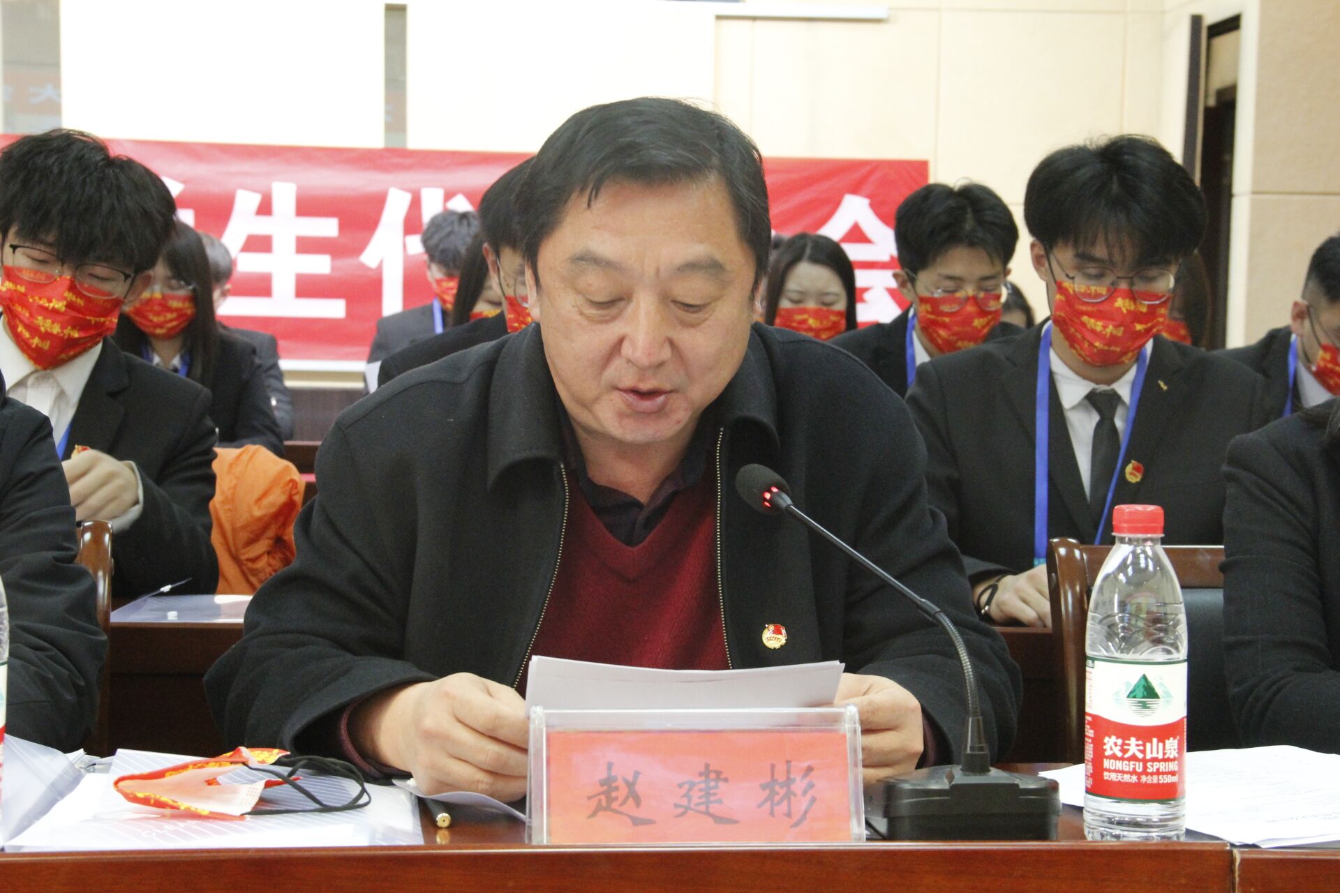 学校党委副书记赵建彬同志代表学校党委向大会的召开表示热烈的祝贺,向全校同学致以亲切的慰问。校党委肯定了一年来学生会工作取得的成绩,各级学生会组织坚持正确政治方向,围绕学校党政中心工作,不忘初心、牢记使命、锐意改革、积极进取,主动贴近青年学生实际,积极应对新形势、新挑战、新使命,在思想引领、校园文化、社会实践、志愿服务、创新创业等方面做了大量卓有成效的工作;充分发挥根植同学、贴近同学的优势,传递党的声音、倾听同学诉求,不断提升服务学生成长发展的能力和水平,在与时俱进和守正创新中巩固了改革成果,在履职尽责中展现了使命担当。