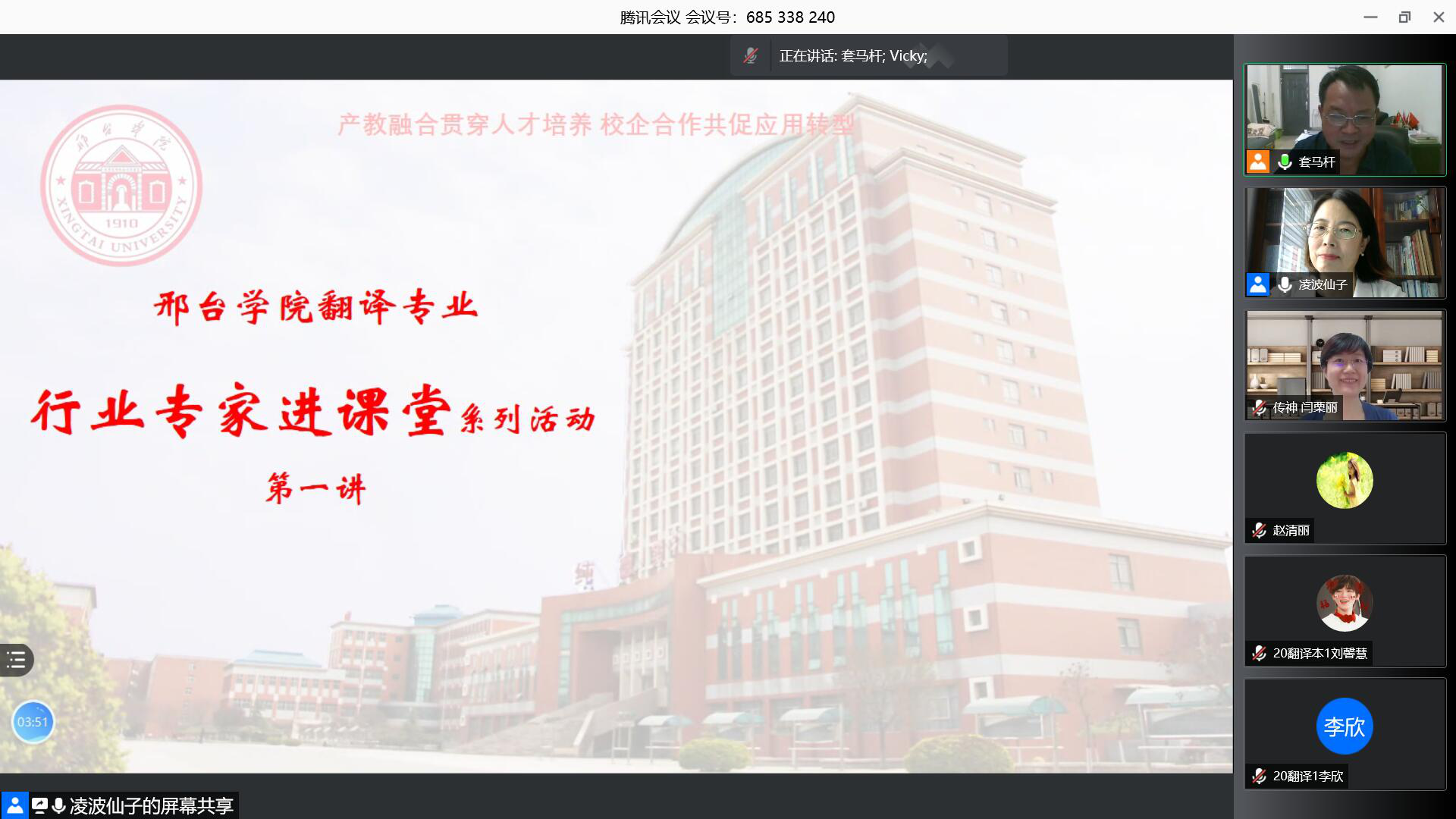9月27日下午,传神语联网网络科技股份有限公司副总裁闫栗丽女士为我校外国语学院翻译专业师生举行了在线讲座,标志着翻译专业应用型转型试点和“行业专家进课堂”系列活动正式拉开帷幕。