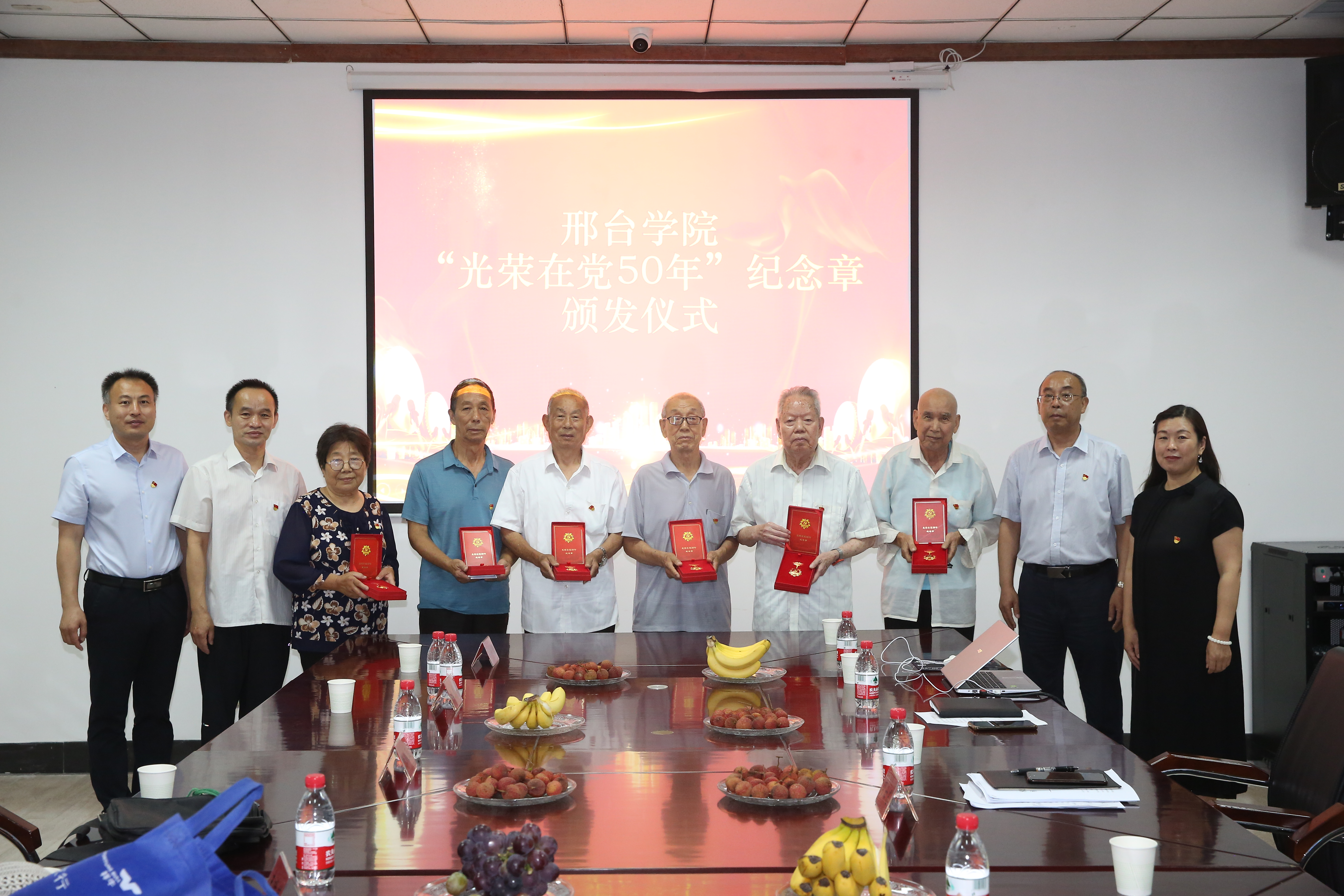 党委副书记朱金亮宣读了《中共邢台学院委员会关于颁发“光荣在党50年”纪念章的决定》。按照党中央要求,经邢台市委教育工委审核,校党委研究,我校有45名老党员荣获“光荣在党50年”纪念章。