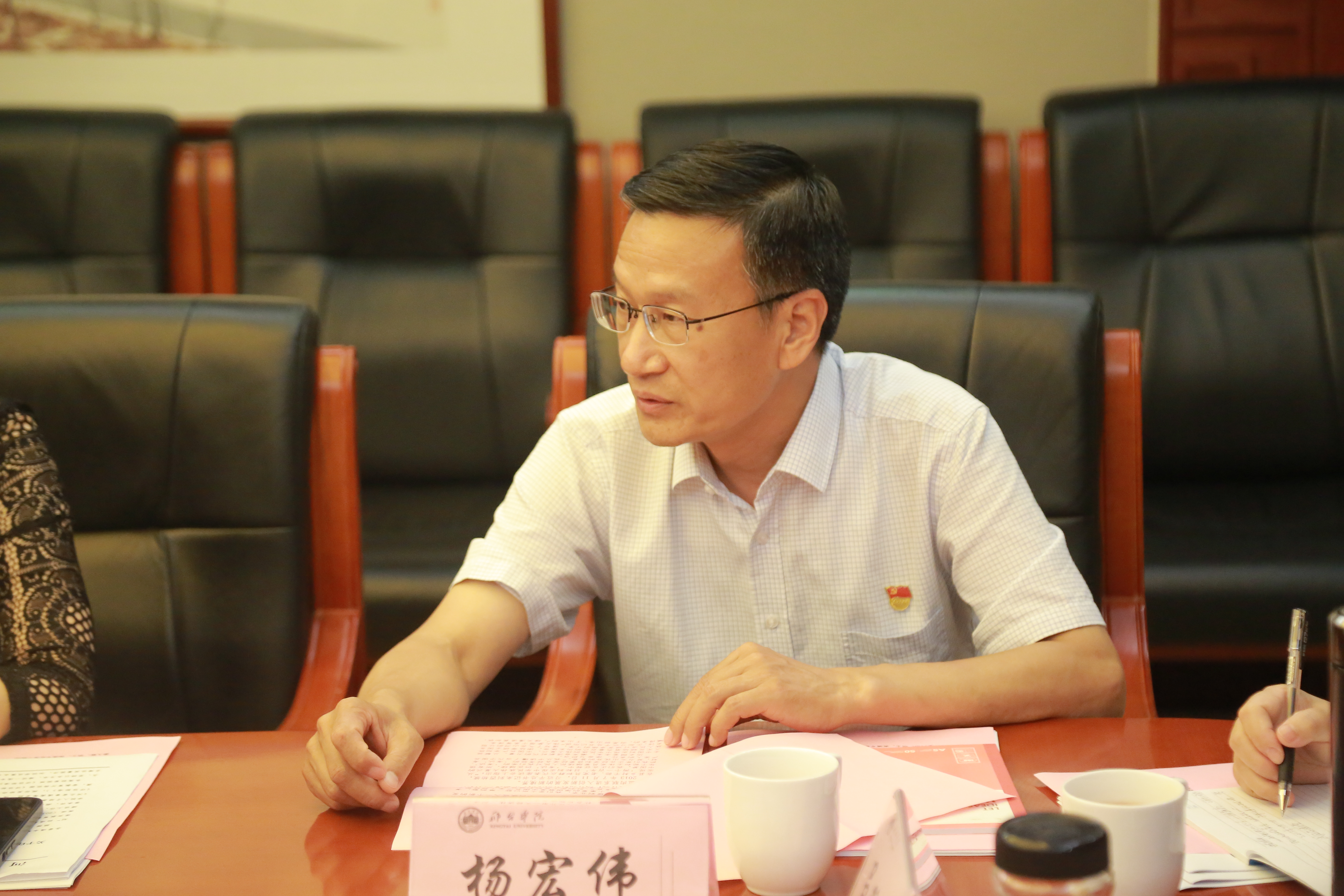 西柏坡纪念馆纪委书记杨宏伟介绍了西柏坡历史及发展,并做了《让西柏坡精神在新时代绽放出更加灿烂的光芒》为主题的专题报告,与会人员感受到了共产党人的信念和力量,专题报告结束后,杨书记与我系老师初步探讨了在西柏坡建立实习实践基地及合作模式。