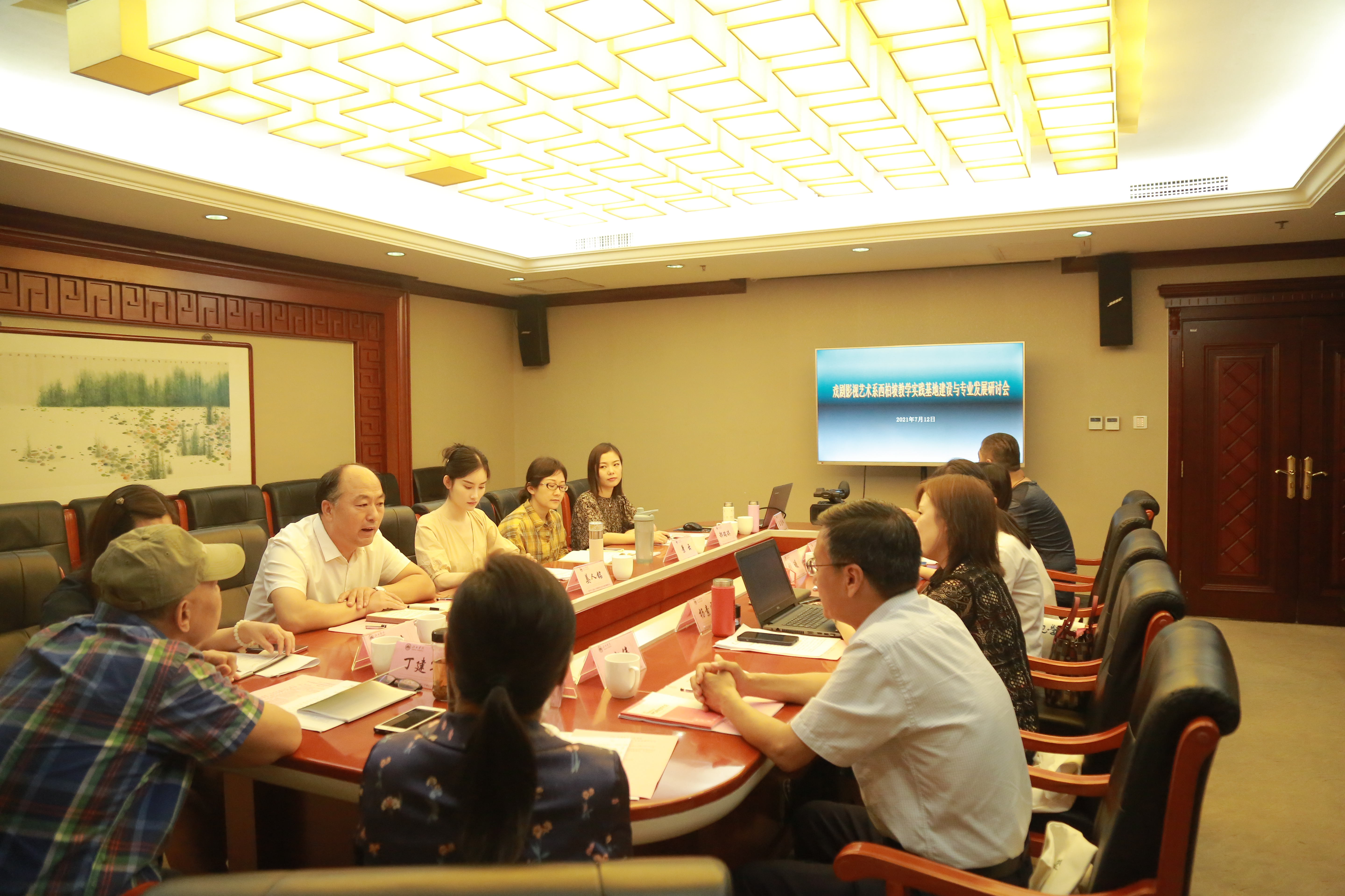本次研讨会邀请山东艺术学院丁建军教授和吕双燕教授进行全程指导。会议受到学校领导高度重视,筹备阶段蔡振禹校长就指示,在专家指导下,要站在学校整体发展规划高度进行学科专业建设,力争建设省级及以上高规格教学实践基地和平台,为一流专业顺利验收夯实基础。研讨会期间,王自力副校长、徐惠敏副校长、人事处张兰英处长先后参加会议,并提出宝贵意见。