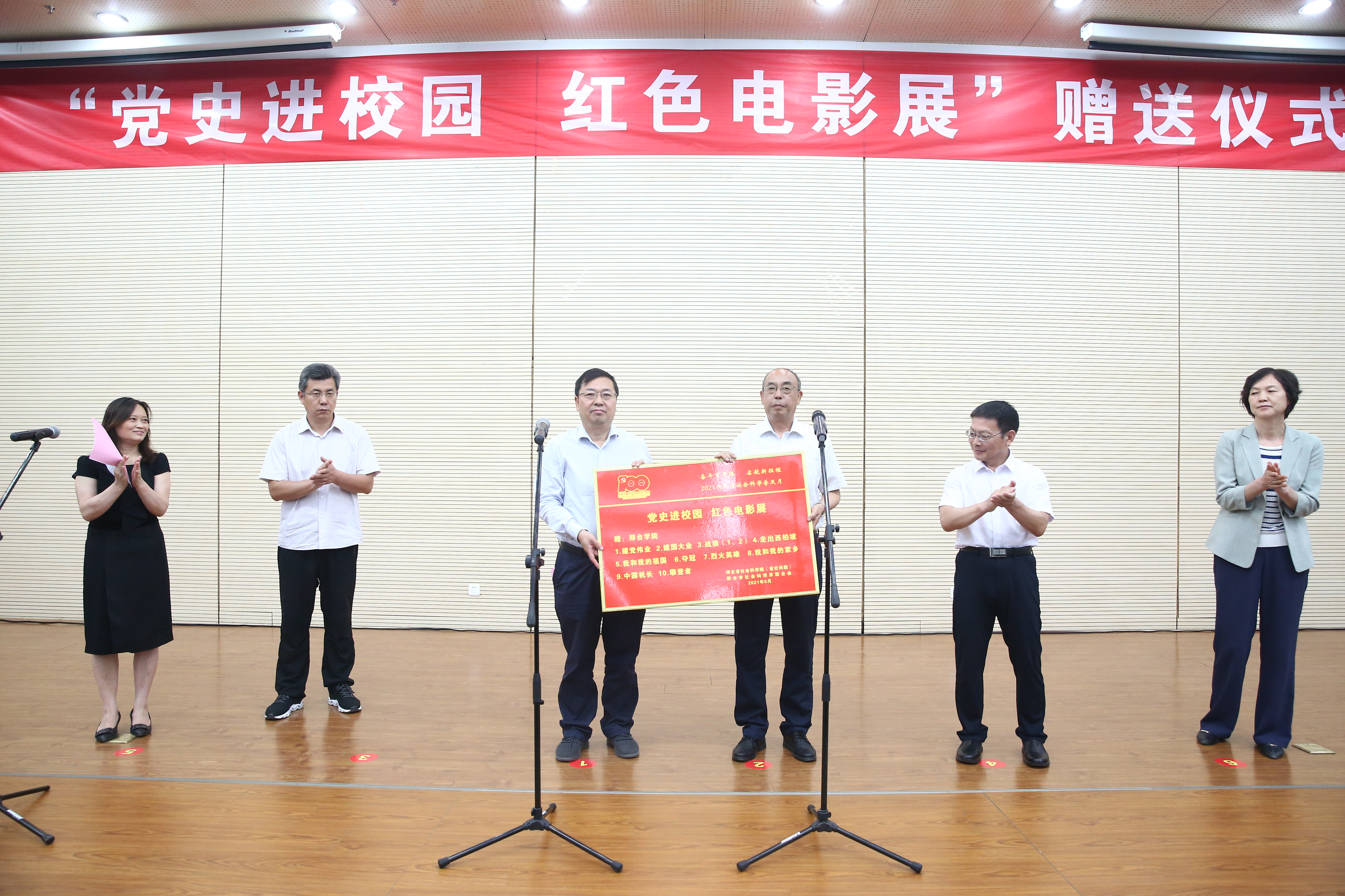 5月29日,在邢台学院图书馆学术报告厅内,举行了“党史进校园 红色电影展”赠送仪式。省社科院党组书记、院长、省社科联第一副主席康振海, 省社科院一级巡视员张福兴, 省社科院副院长、省社科联副主席肖立峰,市委宣传部党组成员、市社科联党组书记、常务副主席刘春格,我校党委书记侯贵星、副校长徐惠敏出席了仪式。《战狼2》《我和我的祖国》《夺冠》等10部场面震撼、令人热血沸腾的红色电影,由河北省社科院、邢台市社科联赠送给邢台学院,10部电影将在5月29日至6月29日全省社科普及月期间,于每个周末在邢台学院轮换露天放映。