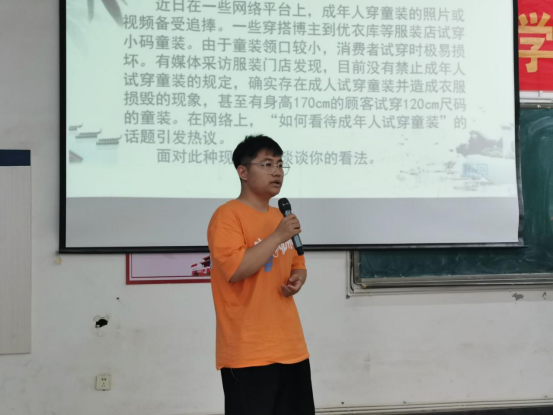 接着,比赛进行到风险题环节。本环节中,有的选手稳中求进,有的选手直面挑战,不论结果对错都分秒必争。在观众的阵阵掌声中,风险题环节结束。最后,即兴评述环节,各队派代表上台现场进行5分钟内的演说。此环节既是知识的比拼,又是分析解决问题的较量,更是信心与心态的比试。每位选手临危不乱,评说观点新颖独特,评述过程条理清晰,获得了评委与观众的一致好评。