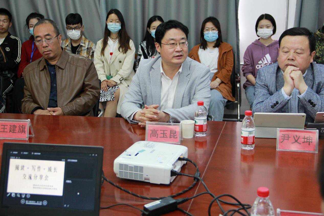 为进一步激发文学院学生热爱文学、大胆创作的激情,4月30日,文学院邀请邢台市知名作家、诗人王建旗、张瑞桥、古柳、董保纲、赵海萍、孟庆果以及文学院教师孟宪华、范爱菊、徐光淼等,与文学院弘毅文学社的同学们以“阅读•写作•成长”为主题,在第一教学楼文学院会议室进行了面对面交流分享。文学院校友、邢台市文联党组成员、副主席高玉昆出席交流会并致辞。交流会由邢台市文艺评论家协会主席尹义坤主持。