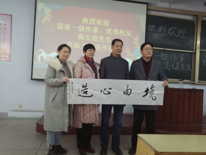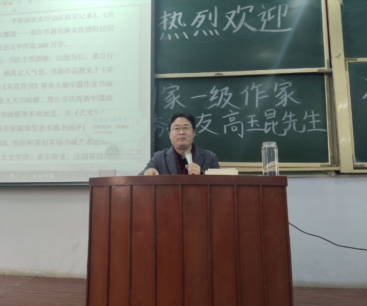 为进一步激发大学生文学创作激情,更好地树立专业意识,提升专业素养,12月19日,文学院在第一教学楼三层阶梯教室举办了著名作家高玉昆先生专题报告会。报告会的题目是:文学与人生漫谈——由我写时代楷模李保国说开去。报告会由文学院写作教师杨慧芬副教授主持。文学院党委书记施江斌、王娜老师和近200名学生参加了本次报告会。
