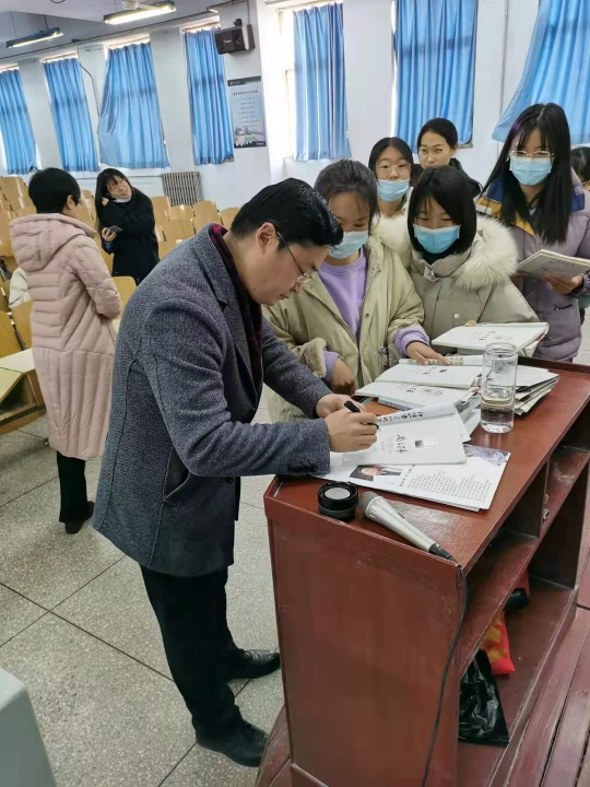 报告会结束后,高玉昆先生与现场的同学们进行了互动交流,并签名赠书留念。