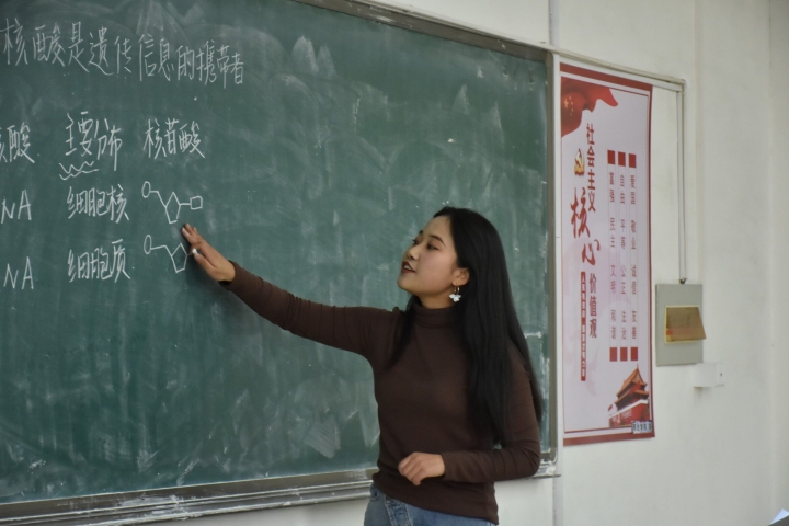 大赛包括课程讲授、自制教具和粉(钢)笔字等三项内容,旨在促进师范生教师职业技能的训练,提升学生的从教能力,增强教育实践能力,为成为合格的中学生物学教师打下坚实的基础。