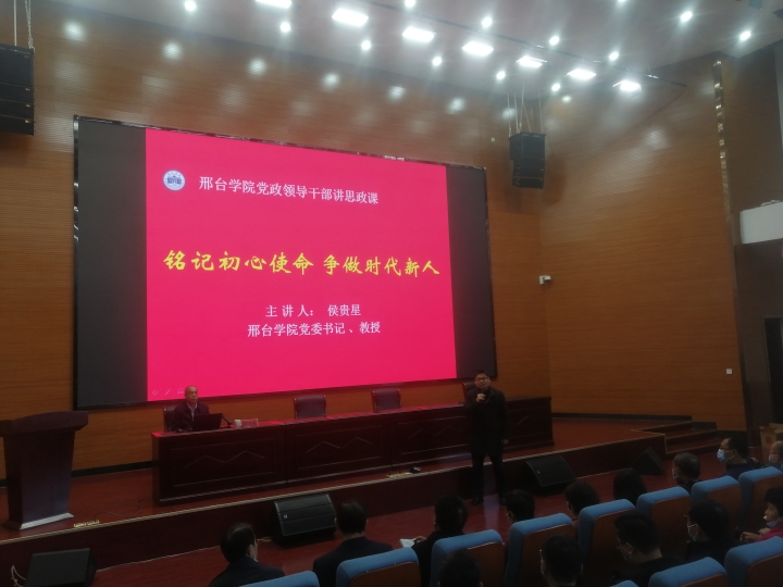 11月2日,邢台学院党委书记侯贵星教授在公教楼学术报告厅为马克思主义学院全体师生作题为“铭记初心使命,争做时代新人”的思想政治理论课。