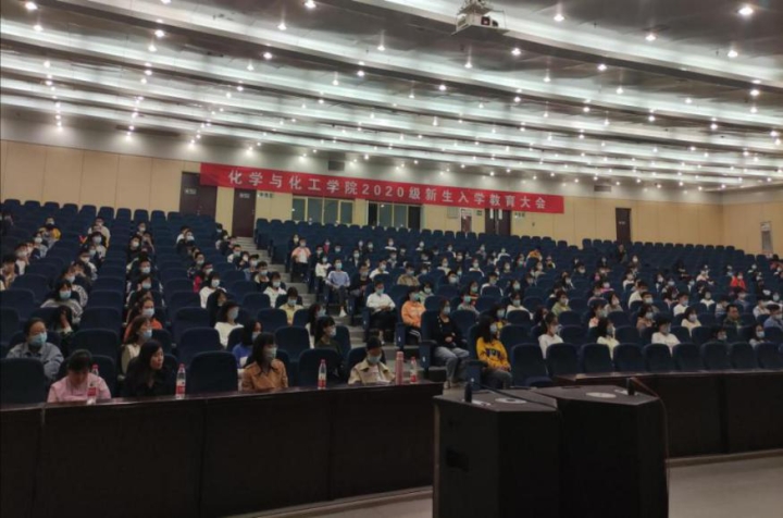 10月11日下午,化学与化工学院2020级新生入学教育大会在我校体育馆报告厅举行。化学与化工学院副院长董丽丽、教科办主任王彩君、应用化学教研室主任梁慧锋、化学工程教研室主任王力川、化学教研室主任乔卫叶、学管办主任于玲以及部分教师出席,大会由学院党总支副书记樊娜主持。大会还特别邀请了全国人大代表陈凤珍教授做报告,220余名新生参加了此次大会。