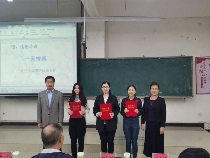 “玉壶存冰心,朱笔写师魂。谆谆如父语,殷殷似友亲。”为适应新形势下的教学改革,响应省教育厅号召,进一步推动教师教育教学改革纵深发展,提高师范学生讲课、授课的教学技能,文学院于10月5日晚在公教楼205教室举办了“邢台学院师范生语文教学技能大赛”的校赛。文学院党委书记施江斌、院长王玉华、教科研管理办公室主任刘新英、学管办主任李伟和文学院汉语言文学专业近200名学生参与观看了此次活动。