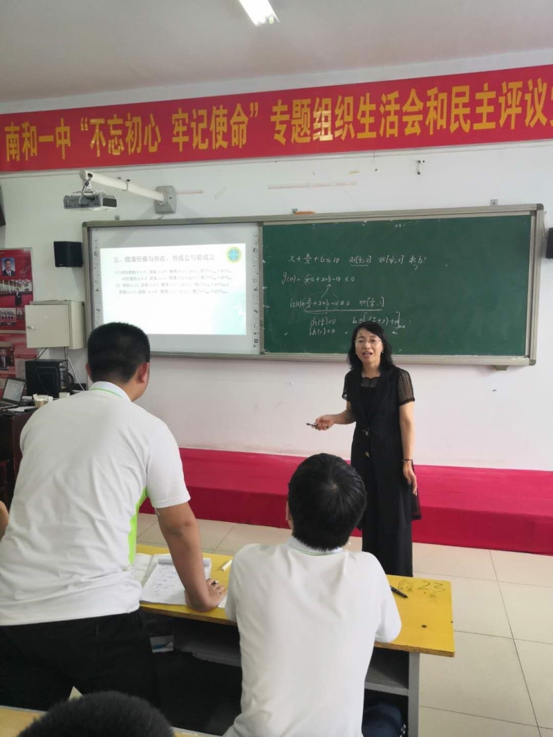 在《用函数思想、导数工具解题时需要注意的问题》的课堂中,胡老师亲切自然的教态,满含关切的笑容,一字一句的启发和引导,将艰深的数学课,变得生动有趣,变得妙趣横生、悬念迭起。核心素养训练在有条不紊的高效课堂教学中一一落实。胡老师送来先进的教学理念,送来高效的教学方法,送来民盟教育专委对教育教学,对祖国未来的一颗颗热诚奉献的心。