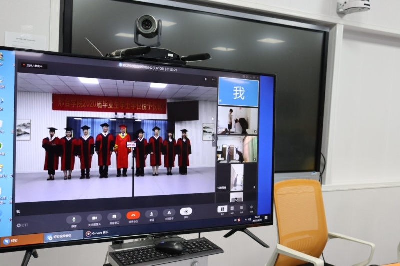 受新冠肺炎影响,学生们无法返校参加现场的仪式。为了不让毕业生们错过这场盛典,留下终生的遗憾,学院经研究决定,举办一场在线的学位授予仪式。全院各相关岗位人员为了办好这次“云典礼”,周密布置,认真谋划,克服了种种困难。学院提前把学位服快递到全国各地每一名学生的家里,辅导员老师多次模拟,指导每名同学的站位和服装,邀请家长一同出席学生人生中这荣耀的时刻,并为毕业生拨穗,见证和分享孩子的喜悦。