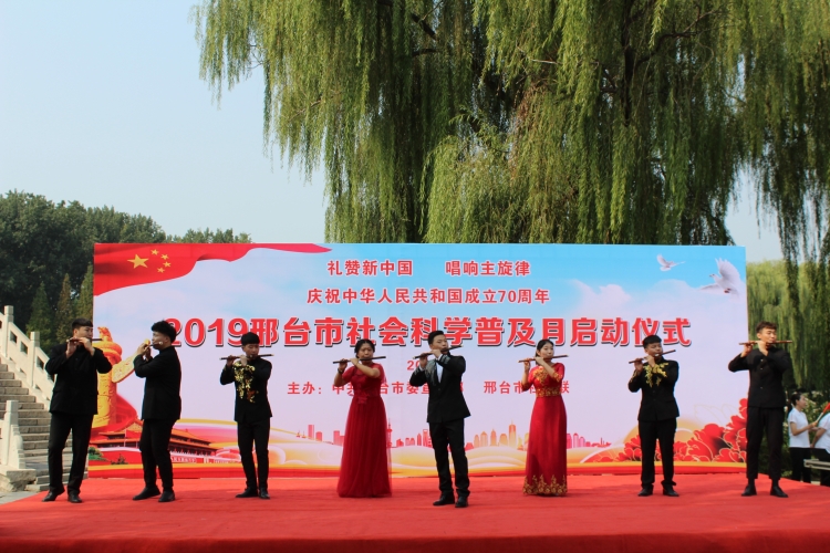 9月27日邢台市社会科学普及月启动仪式在邢台市达活泉公园(郭守敬纪念馆门前广场)进行。本次社科普及月活动主题为“礼赞新中国唱响主旋律——庆祝中华人民共和国成立70周年”。市宣传部党组成员、市社科联党组书记、常务副主席刘春格致辞,市委宣传部常务副部长姜玉辰宣布邢台市社会科学普及月启动。启动仪式由市社科联副主席张金义主持。市社科联秘书长张占军等领导、邢台学院师生代表参加了启动仪式。