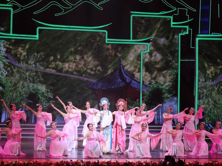 9月26—29日,音乐舞蹈学院“红蓼花舞蹈团”师生52人,应邀赴“黄梅戏之乡”安徽省安庆市,参加安徽省文化和旅游厅、安庆市人民政府主办的“戏从风中来、唱响新时代”——2019年安庆“十一”黄梅戏展演周开幕式文艺演出。作为一年一度的戏曲盛会,该活动具有广泛的影响力。而我校作为唯一一所外省演出单位,承担了整场的伴舞任务,赢得了晚会编导和观众的交口称赞。据悉,该场晚会国庆期间将在央视11套(戏曲频道)播出。