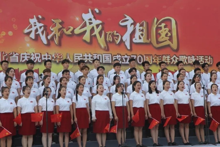 9月26日下午,“我和我的祖国”河北省庆祝中华人民共和国成立70周年群众歌咏活动(邢台),在邢台园博园精彩上演。现场红旗飘扬,一片喜庆祥和的气氛。该展演由河北省委宣传部、省文化和旅游厅、省文联、河北广播电视台组织,音乐舞蹈学院红蓼花合唱团的同学们与邢台楷模、志愿者代表和千余名群众用嘹亮歌声,激昂澎湃地唱出了力量与希望,唱出了人民群众的信心与梦想,展示了邢台人民礼赞新中国、讴歌新时代的良好精神风貌。