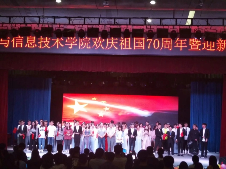 为了充分展示全院师生激扬饱满的爱国热情和奋发昂扬的学院风貌,数学与信息技术学院于9月27日在邢台学院音乐厅举办了“贺国庆、迎新生”主题晚会。出席本次晚会的有数信学院高延武院长、学管办主任张建志老师以及辅导员刘霞、高瑞清、苏笑梅等部分老师,并与全体大一新生、参演师生,共同为中华人民共和国成立七十周年献上最诚挚的祝福。