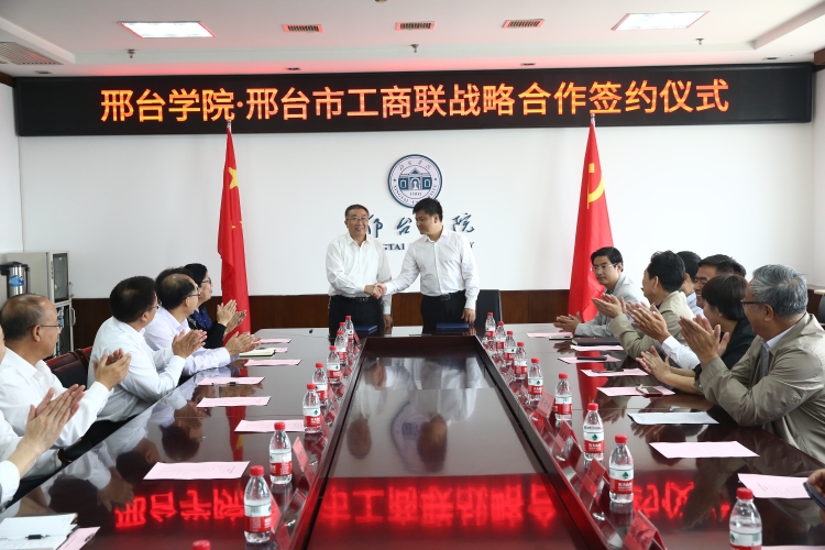 邢台学院校长蔡振禹和邢台市工商业联合会主席王建江代表双方在战略合作协议书上签字,并对今后合作方向达成共识。双方高度一致地确立了战略合作伙伴关系,协议的签署对推动产学研深度融合、搭建“三对接”平台,加强我校学科专业建设、应用型人才培养与服务社会具有重大意义。