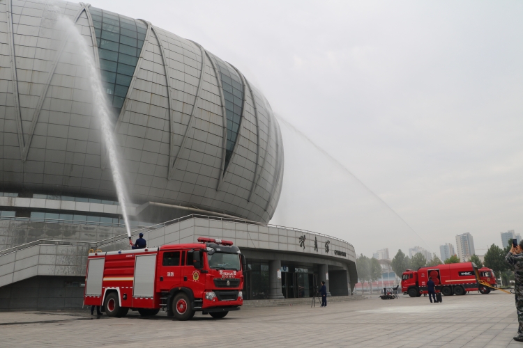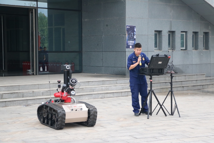 本次的活动由平安路特勤中队提供装备和技术支持,主要进行了灭火器的使用方法培训、模拟火场逃生疏散、高空救援展示、高炮消防车模拟灭火等项目,2019级4500余名新生观看并参与了本次活动。