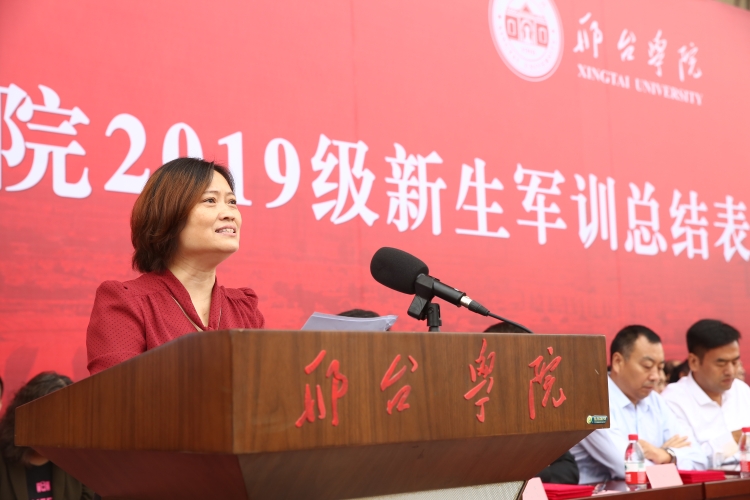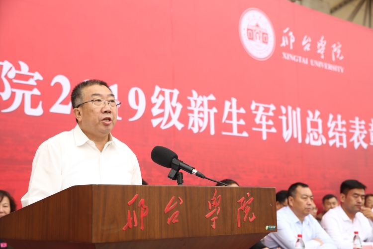 校长蔡振禹以“秉持初心继往开来 砺行致远”为题在典礼上致辞。他首先向来自全国各地的新同学表示了热烈欢迎,并对支持学校军训工作的32151部队官兵及各位与学校合作的企业嘉宾表示诚挚的感谢,同时也为同学们圆满完成军训任务及受到表彰的军训先进集体和个人表示了衷心祝贺!之后蔡校长从“未来几年怎样才能把大学作为一个完善自我、发展自我的重要阶段”和“如何为建设我们伟大的祖国、实现中华民族伟大复兴贡献自己的力量打下坚实基础”两个问题出发,勉励2019级的新生们要深植邢师红色基因,发扬传承邢院精神。之后,他对新生们提出了四点殷切希望,一要有使命担当,二要勤勉实学,三要锤炼品格,四要德智体美劳全面发展。“青春虚度无所成,白首衔悲亦何及”,他指出大学阶段是学生苦练本领、增长才干的黄金时期,要胸怀祖国和人民、奉献社会和他人,立鸿鹄志、做奋进者,为中华民族的伟大复兴贡献自己的一份力量!