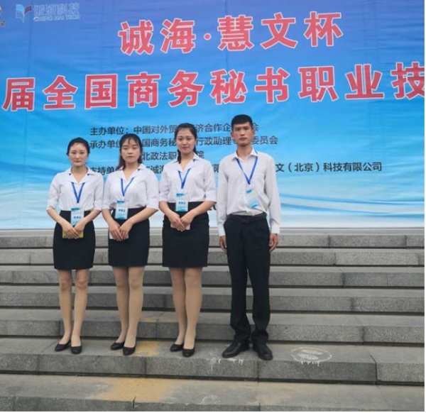 5月17日--19日,“诚海·慧文杯”第九届全国商务秘书职业技能大赛在河北政法职业学院举行,我校文学院秘书学专业代表队经过艰苦拼搏,获得团体二等奖,四名学生分别获得个人三等奖。