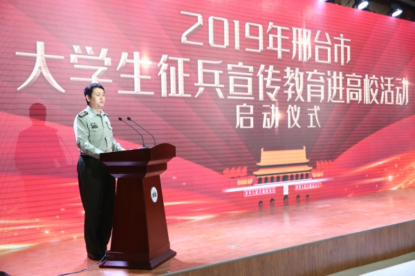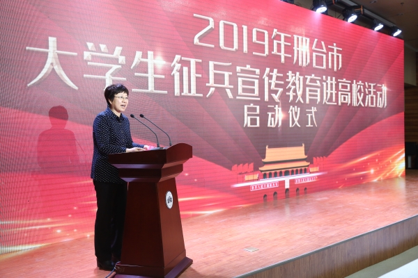 在体育馆二楼学术报告厅,举行了2019年邢台市大学生征兵宣传教育进高校活动启动仪式。邢台学院校长蔡振禹在致辞中号召广大青年学生要不忘我校优良革命传统,牢记使命担当,积极响应国家召唤携笔从戎,将爱国之志化为报国之行,在部队这个大熔炉、大学校里锻炼自己、成就梦想。