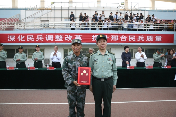 5月9日下午,邢台市民兵整组宣传和大学生征兵宣传教育进高校活动在我校举行。市委常委、军分区司令员陈恒远,军分区政委荆玉师,副市长邓素雪,军分区副司令员孙振波,特邀嘉宾“最美退役军人”吴洪甫、影视演员王宝强,各县市区武装部部长、政委,我校党委书记侯贵星,校长蔡振禹,党委常委徐惠敏以及700余名师生代表参加活动。